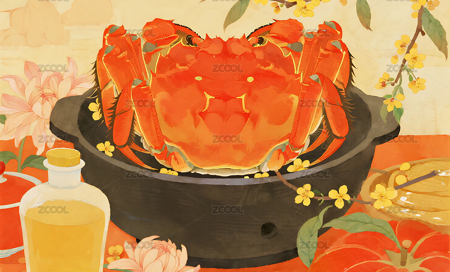 国庆节重阳节赏菊螃蟹寒露霜降节气酒中国风