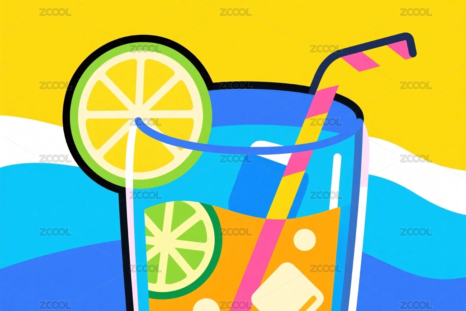插画风格的清凉饮料组合