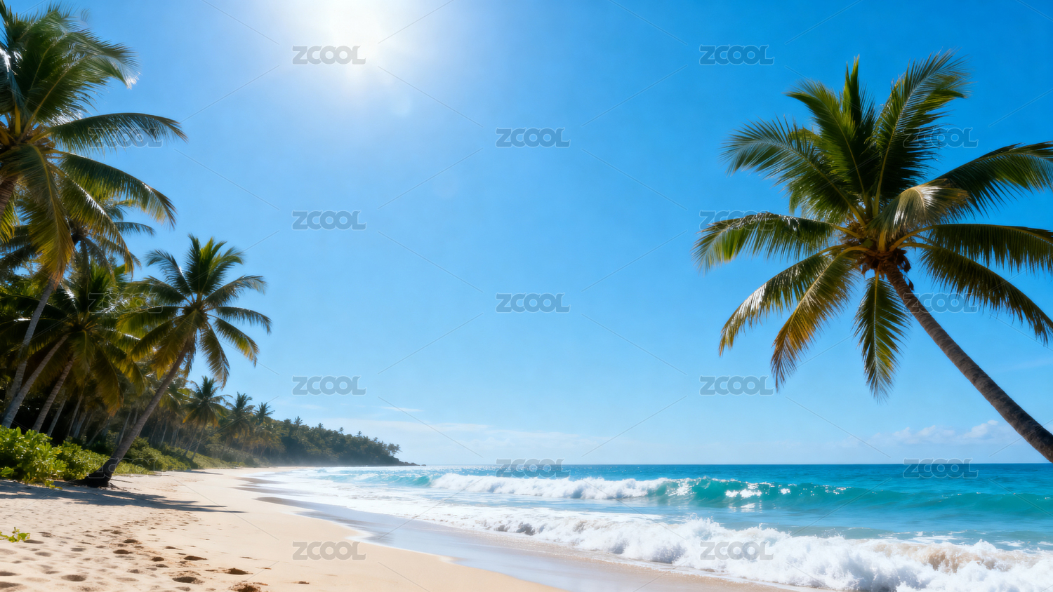 热带海滩椰树蓝天日光