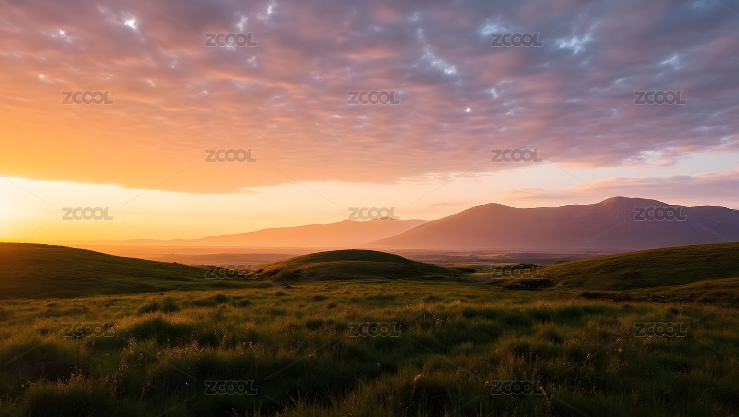 山脉,自然,阳光,草地,云层,风景,远山,晨光,云雾,日出