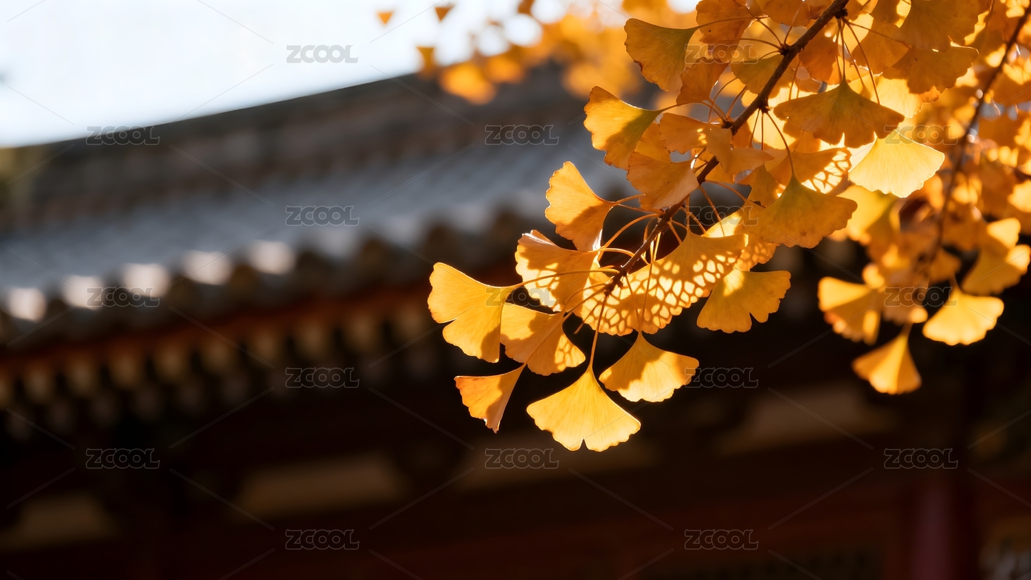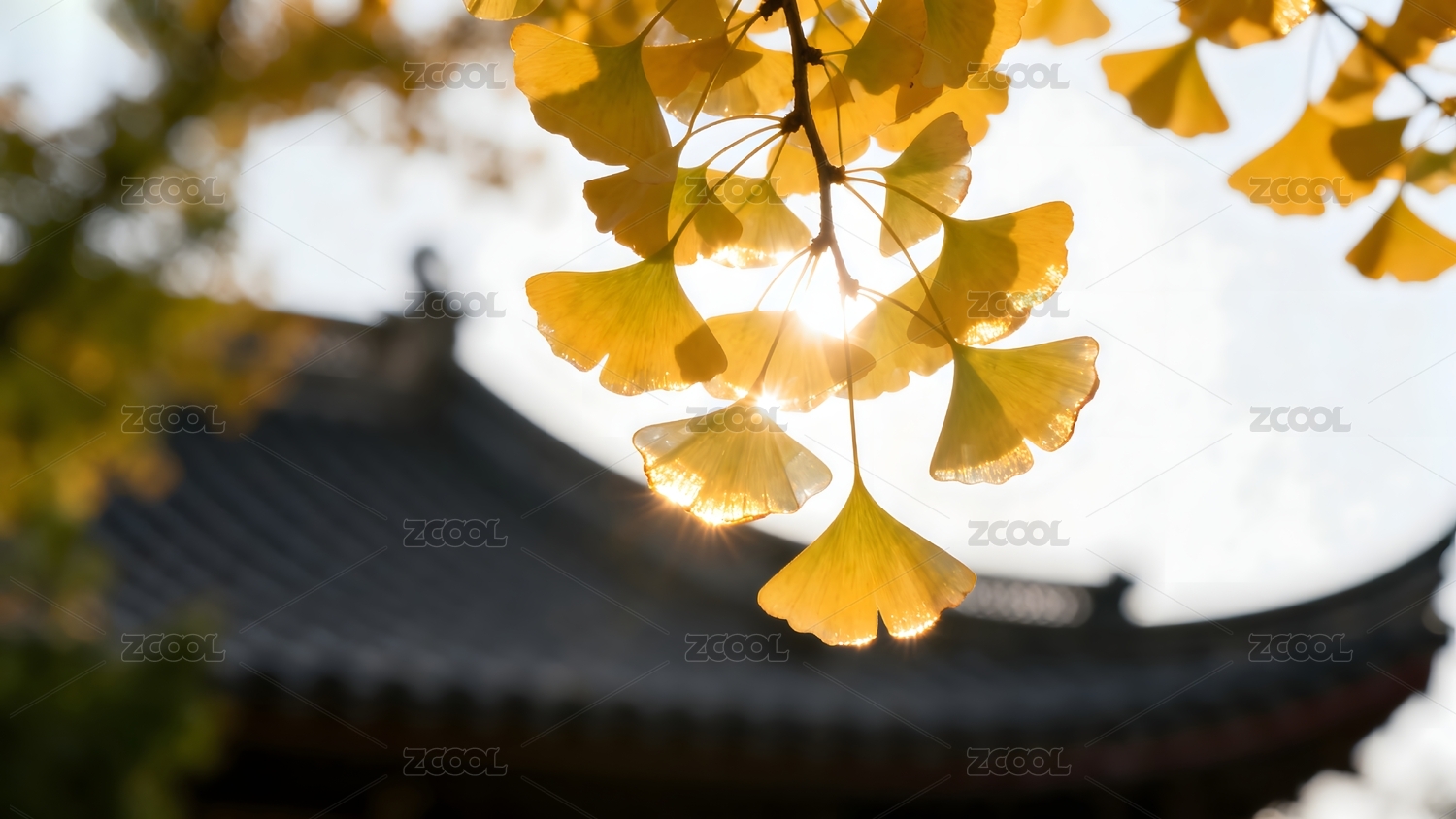 山西太原迎泽公园晋商博物馆内的金色银杏树