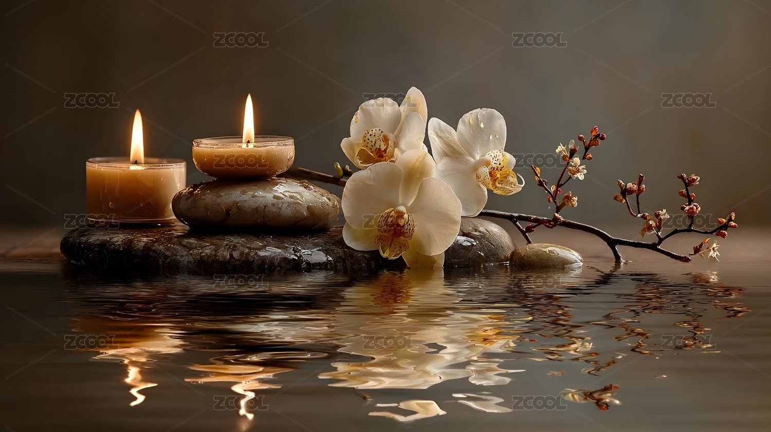 自然,枝条,背景,装饰,木板,花朵,花瓣,精油,石头,蜡烛