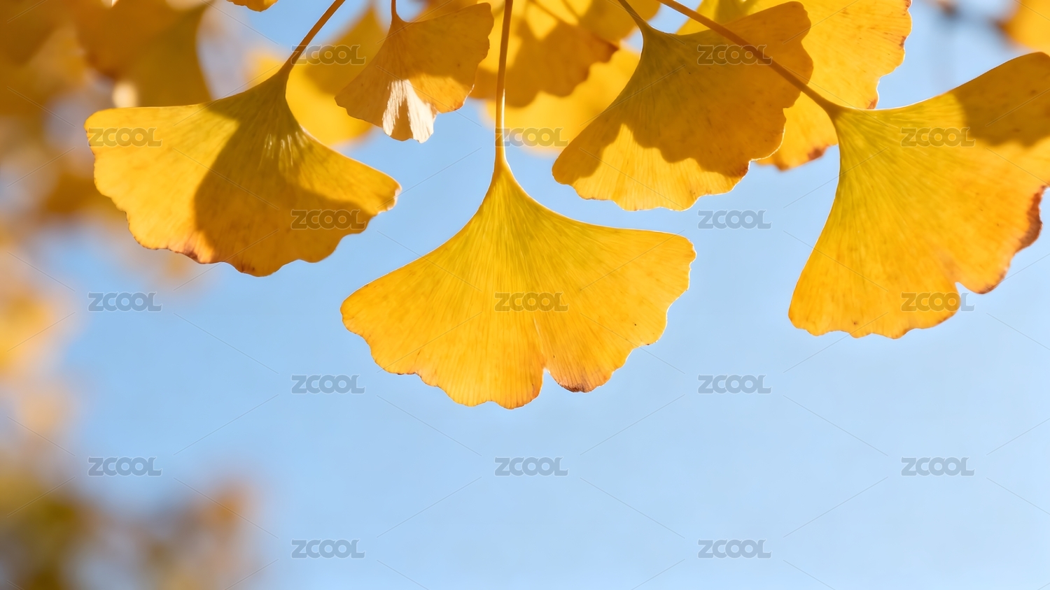 金黄银杏叶在蓝天映衬下闪耀秋日光芒