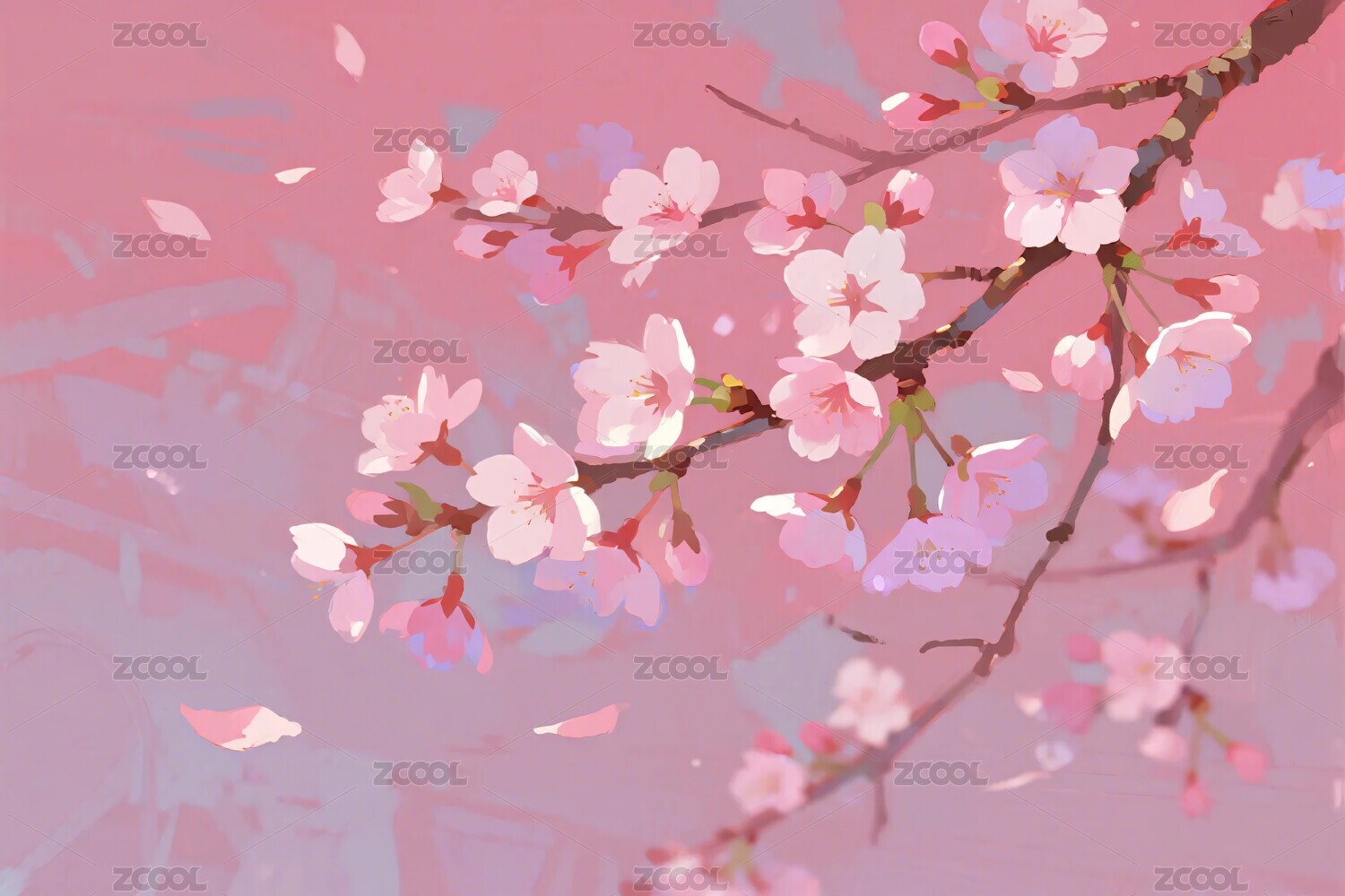 樱花枝手绘插画