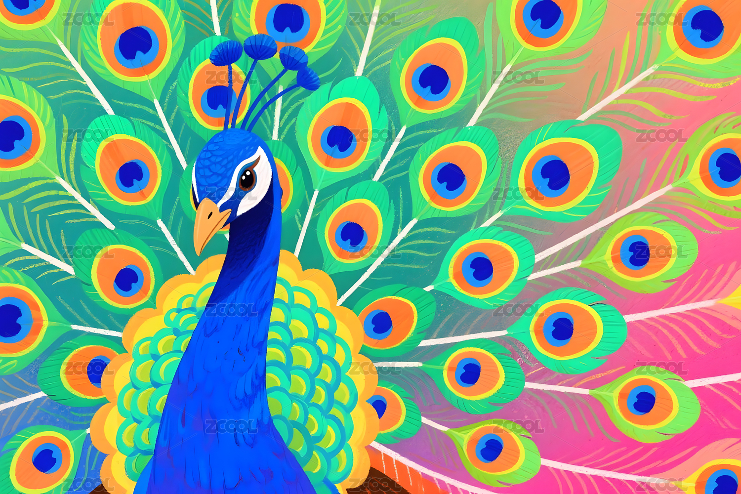 孔雀,羽毛,多彩,插画,艺术,鸟类,绚烂,设计,模板,创意