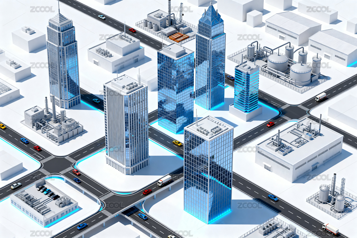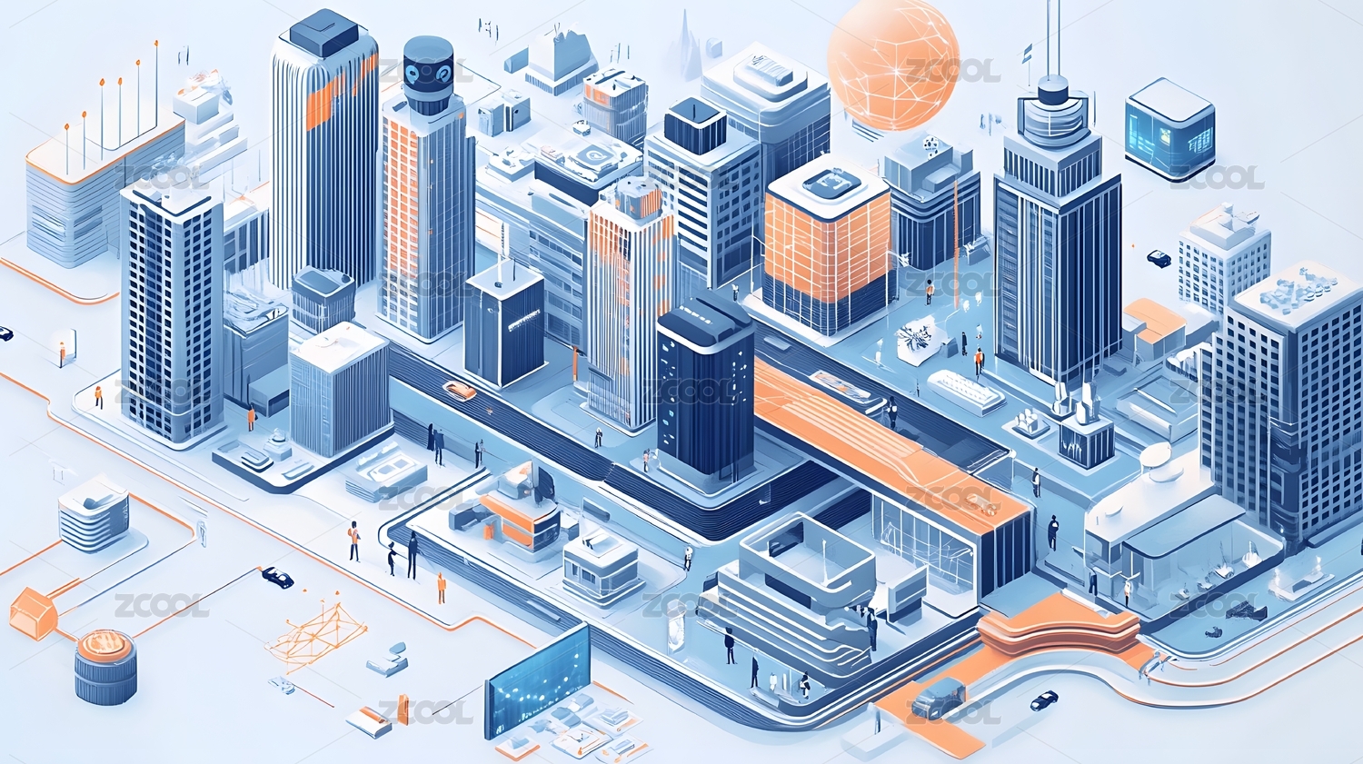 数码科技蓝白色智慧城市智能建筑插画海报背