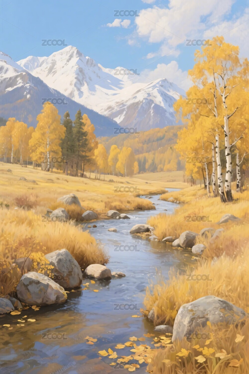 山水,瀑布,山林,树木,秋景,自然,风景,山峦,植被,溪流