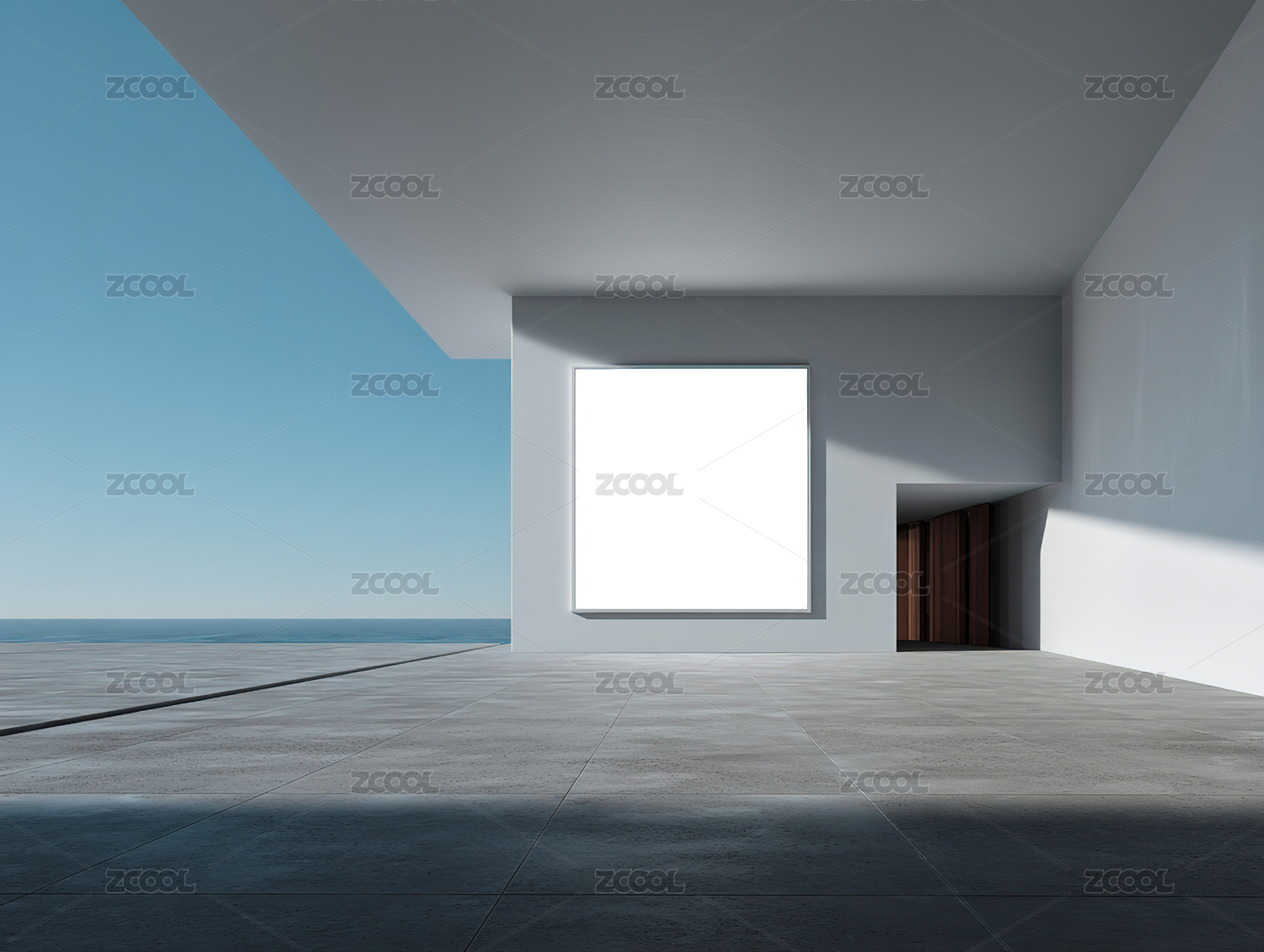 现代建筑,空白画框,岩石,玻璃门,草地,室内空间,简约设计,建筑外景,户外场景,墙面装饰