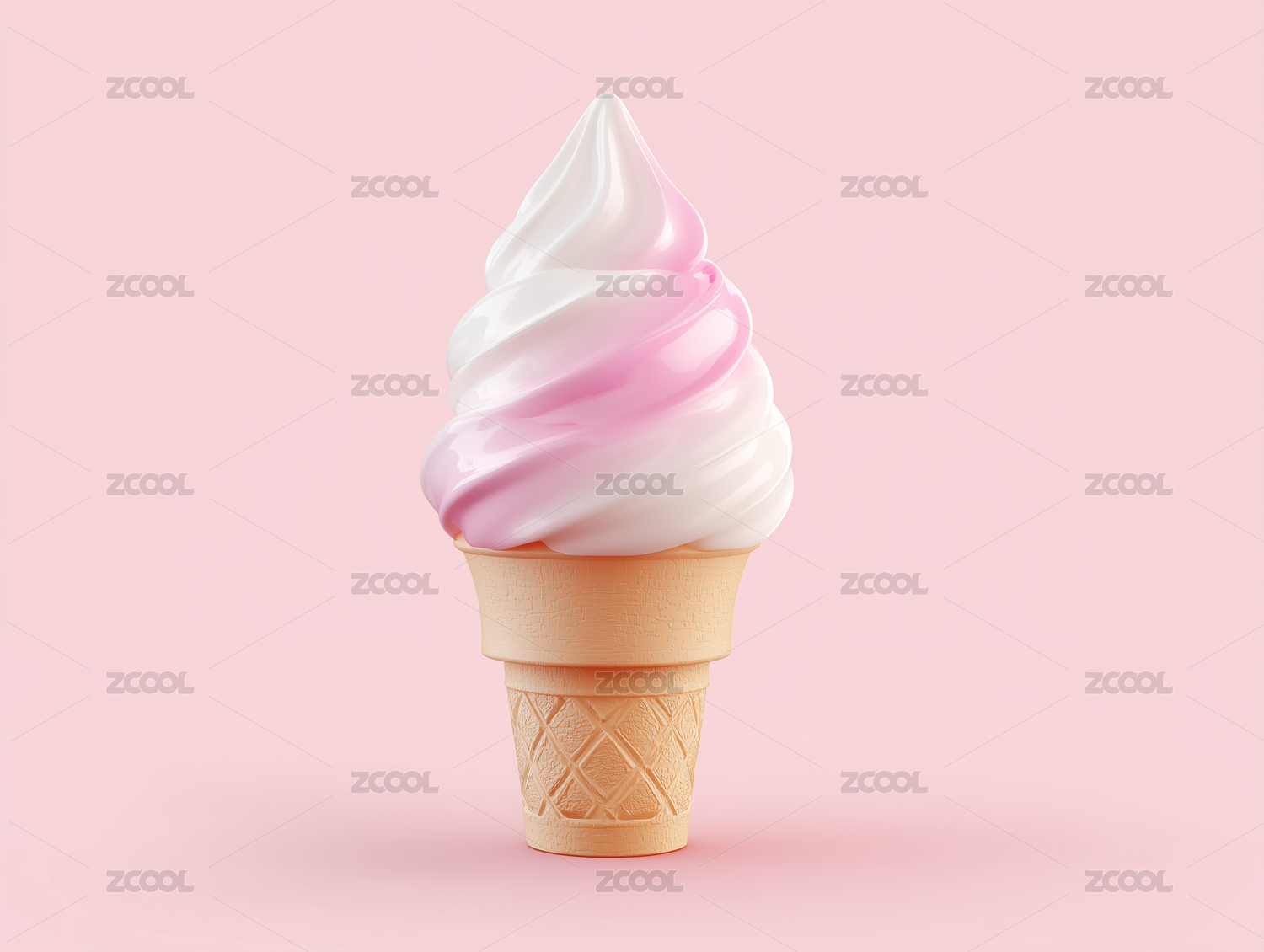 粉红色甜蜜卡通3D冰淇淋雪糕插画