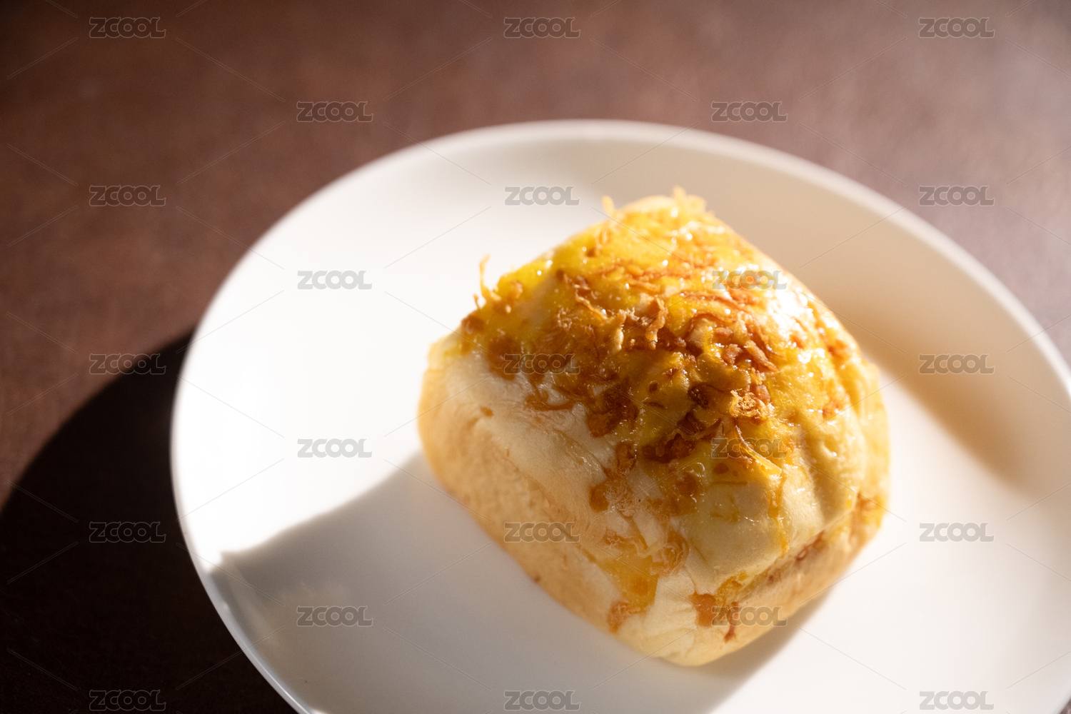 桌面上的盘子里的美味可口的乳酪肉松包