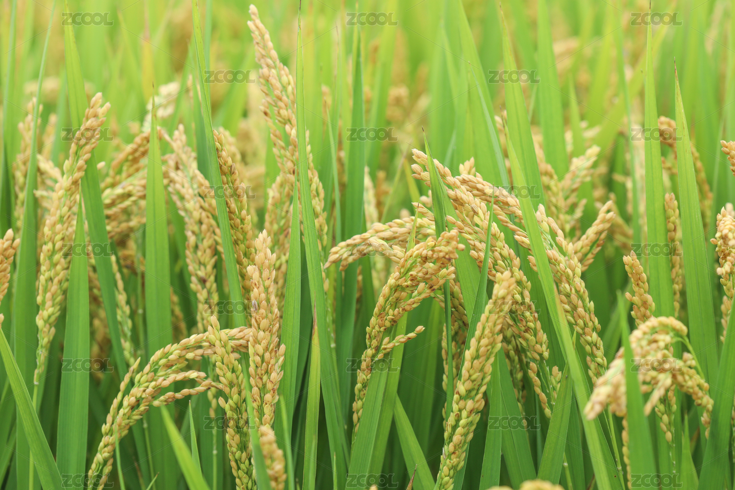 稻田里即将成熟的水稻挂着金黄饱满的稻穗