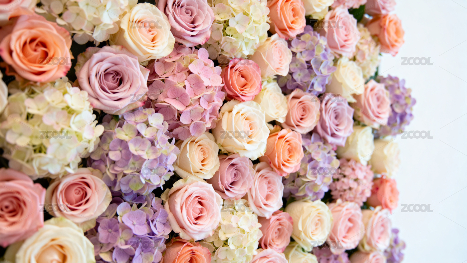 多彩玫瑰与绣球花墙