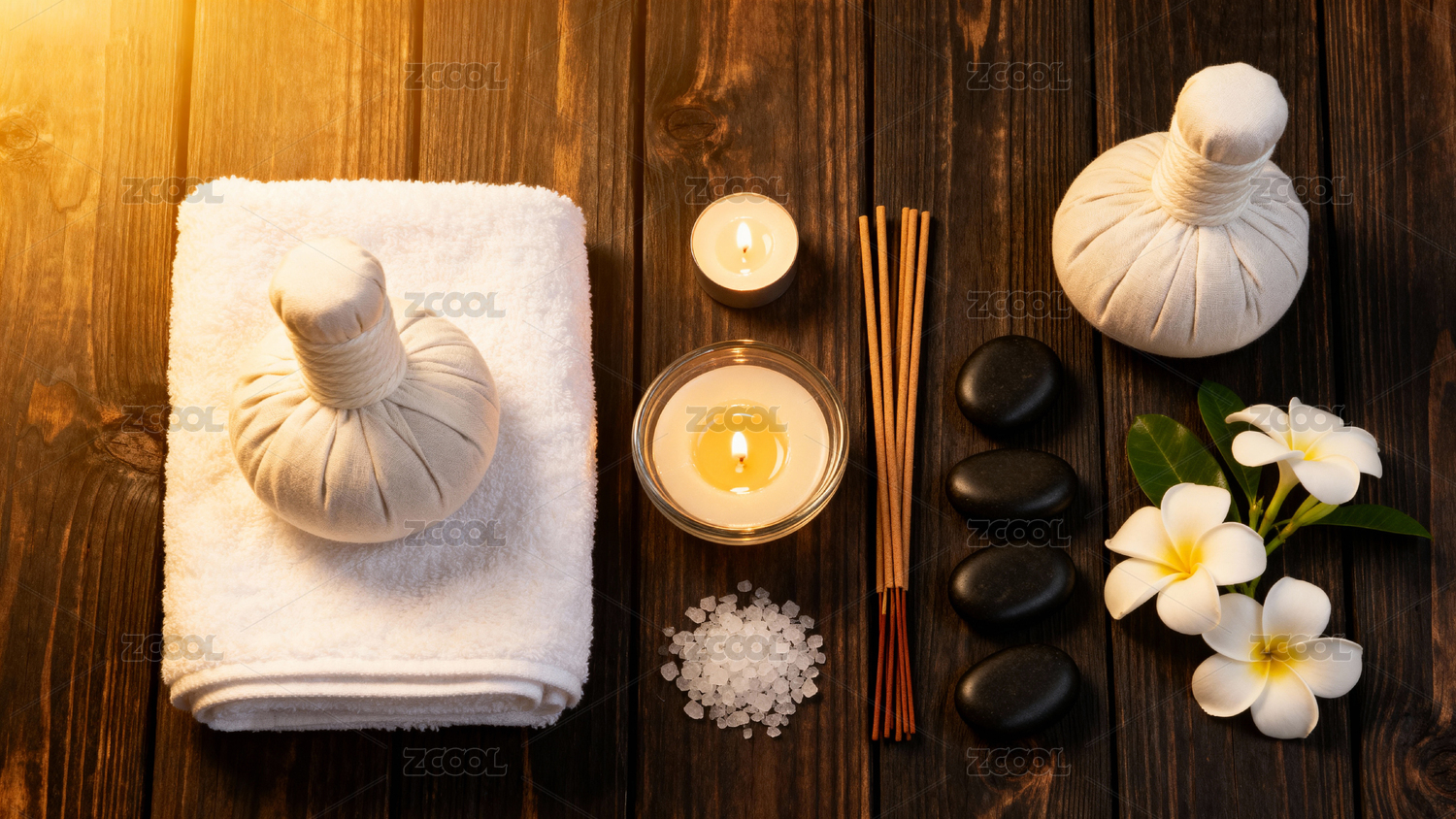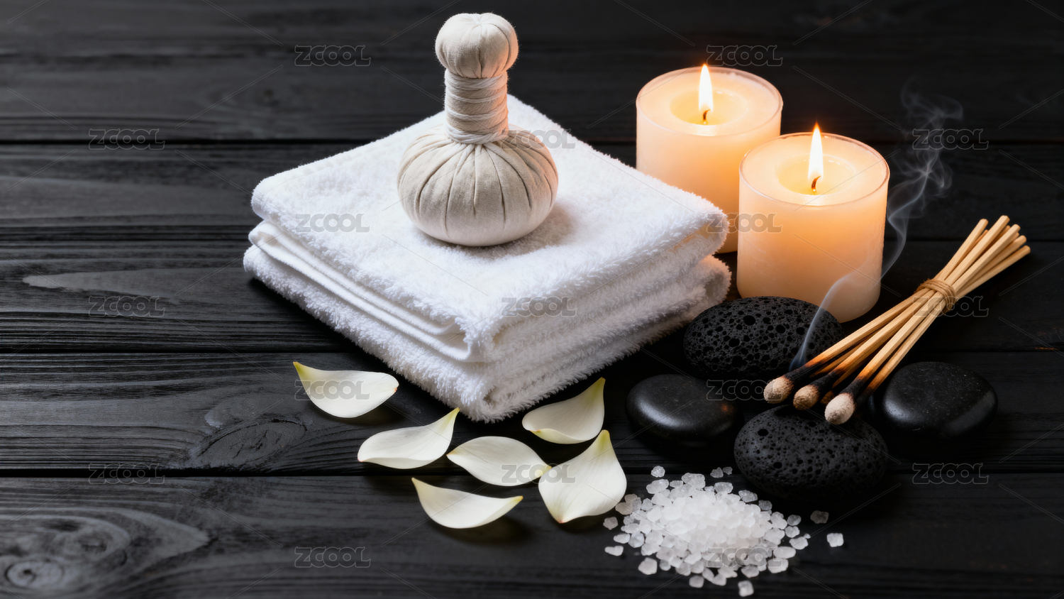 花瓣,白色,spa,蜡烛,毛巾,莲花,盐,石头,精油,按摩