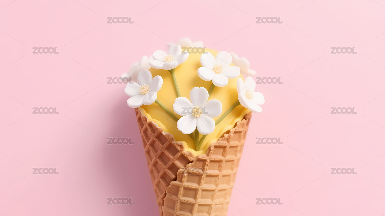 背景,设计,装饰,创意,花朵,甜筒,冰淇淋,花束,冰激凌,花