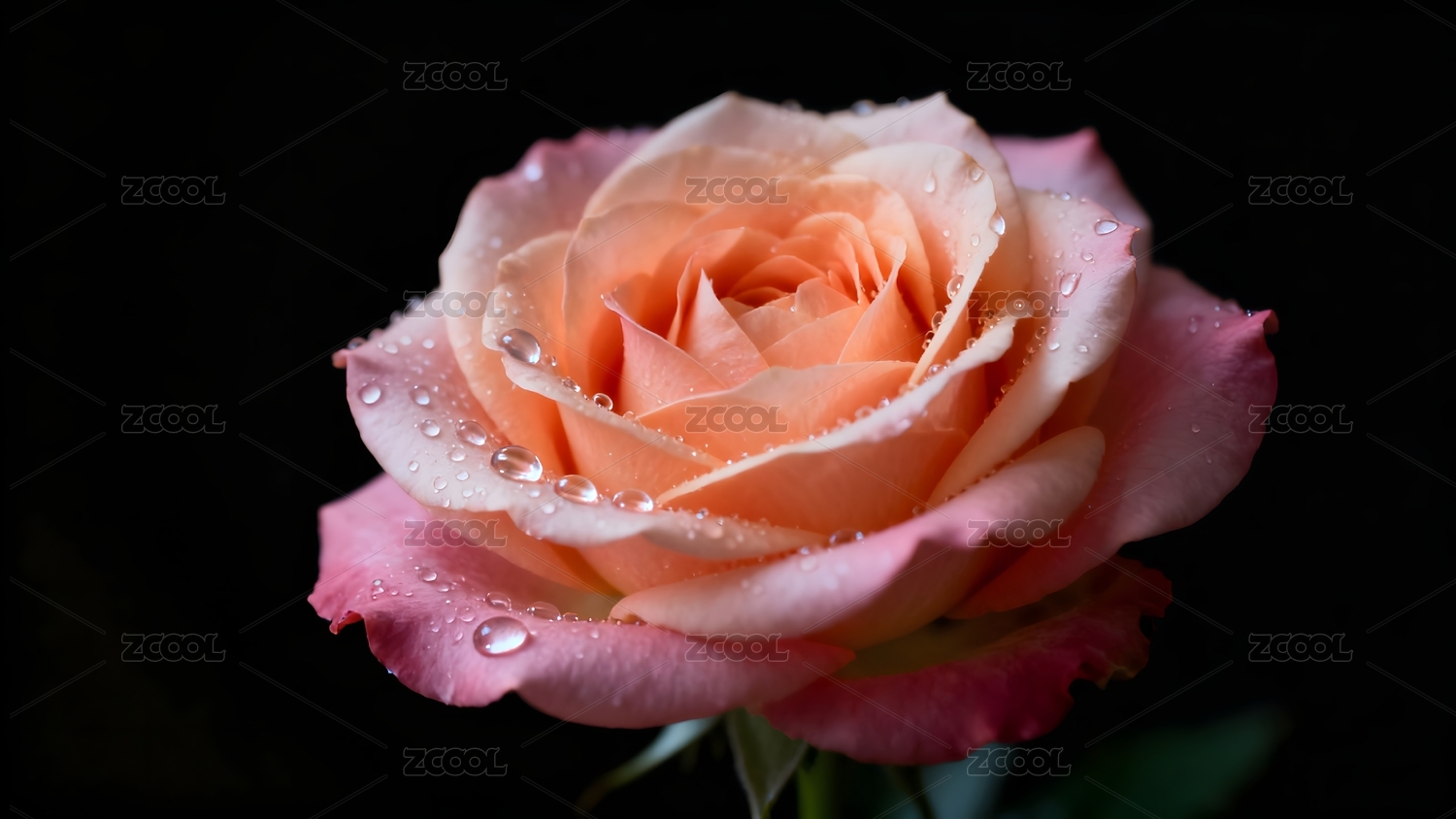 粉橙玫瑰水珠特写