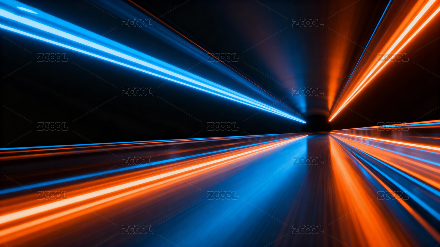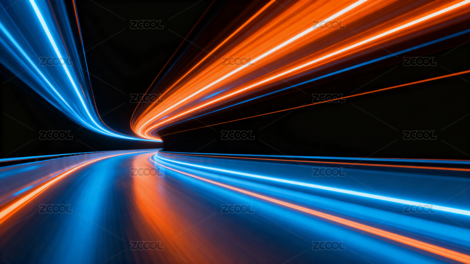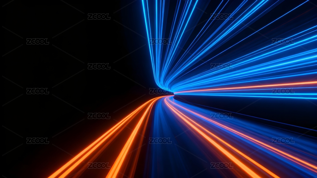 蓝橙光轨交织的动态隧道