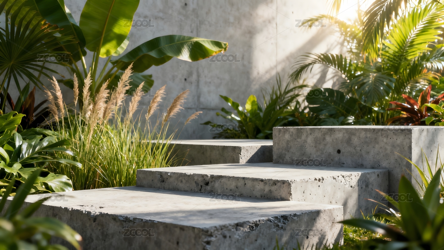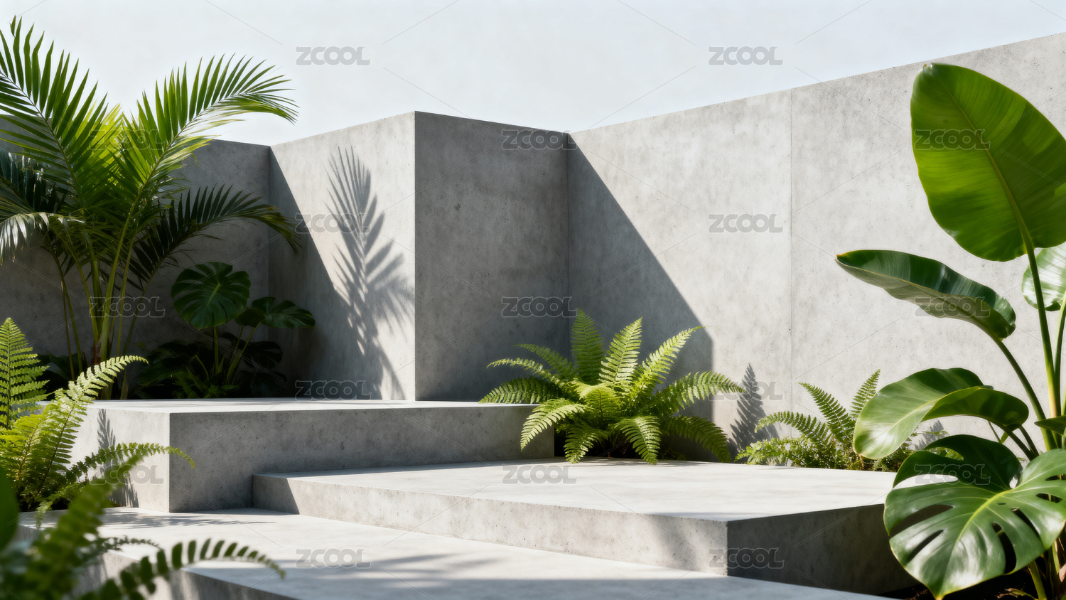 自然,空间,装饰,绿色,植物,阳光,水泥,混凝土,阶梯,绿叶