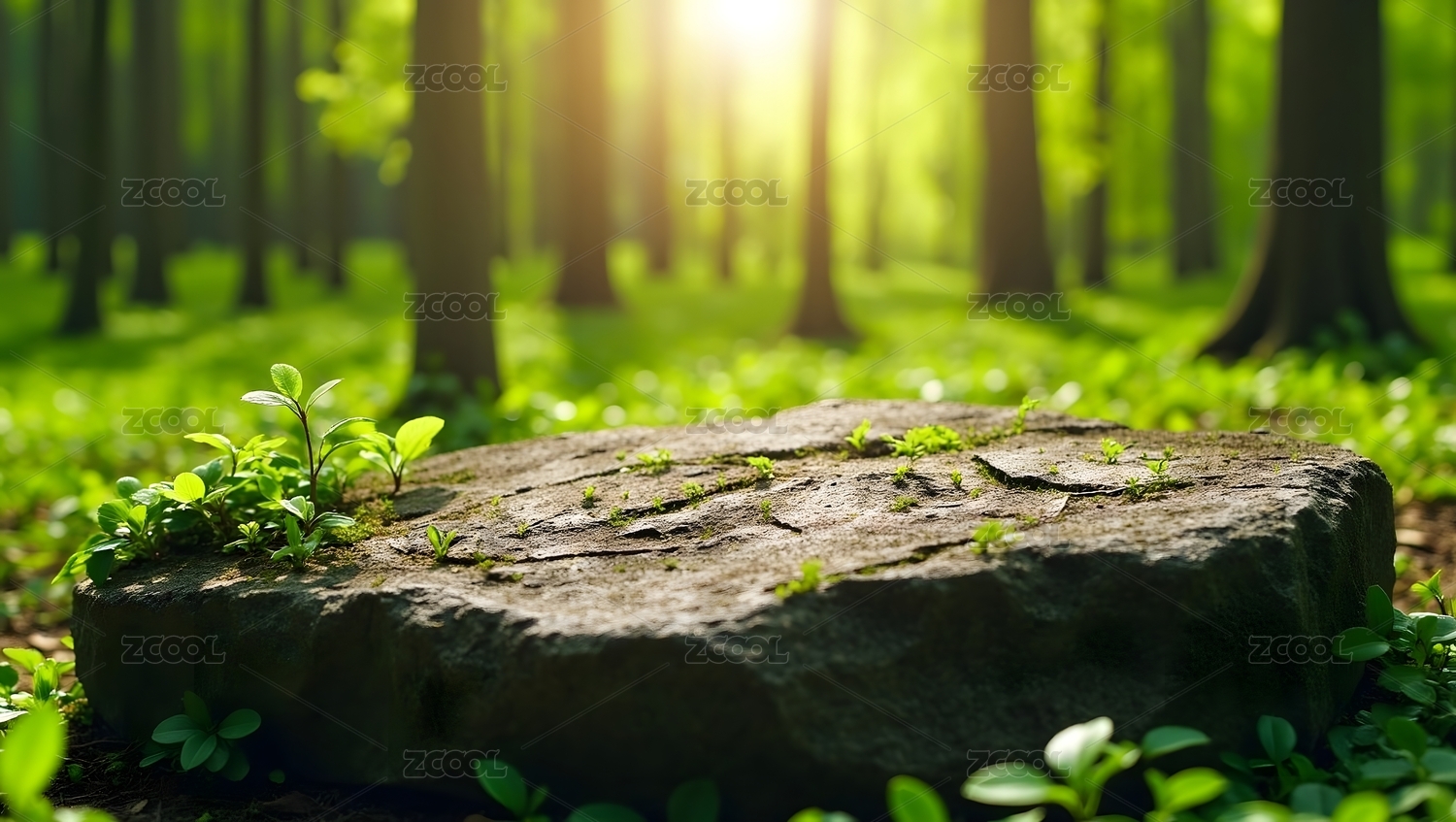 自然,宁静,清晨,光影,绿色,植物,岩石,户外,阳光,地面