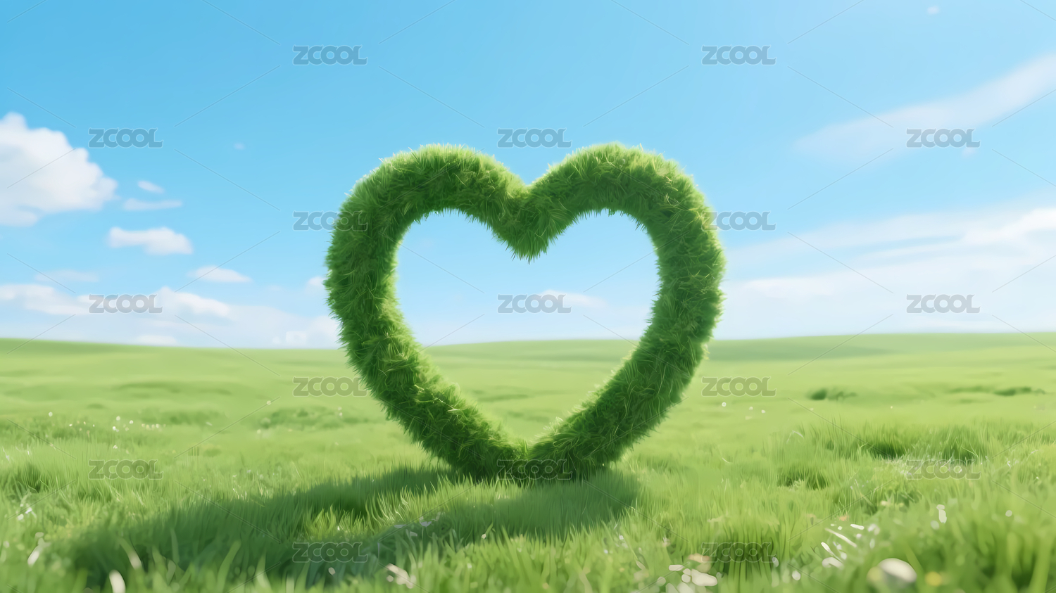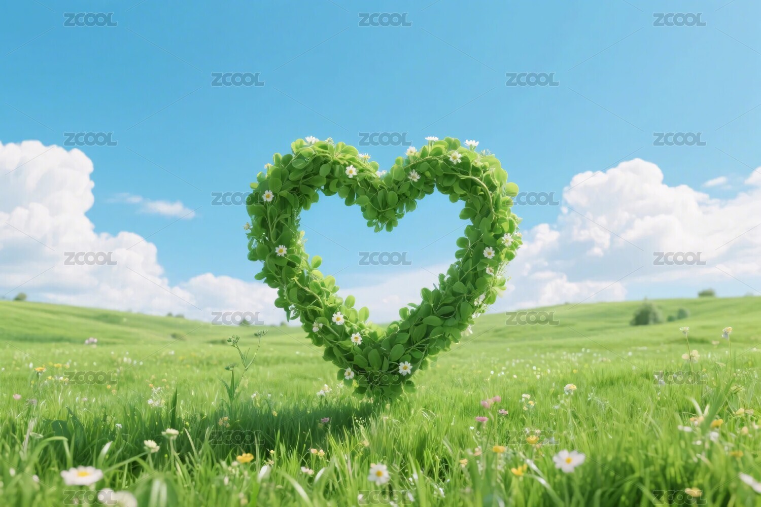心形,花环,绿叶,花朵,草地,蓝天,白云,花草,自然,清新
