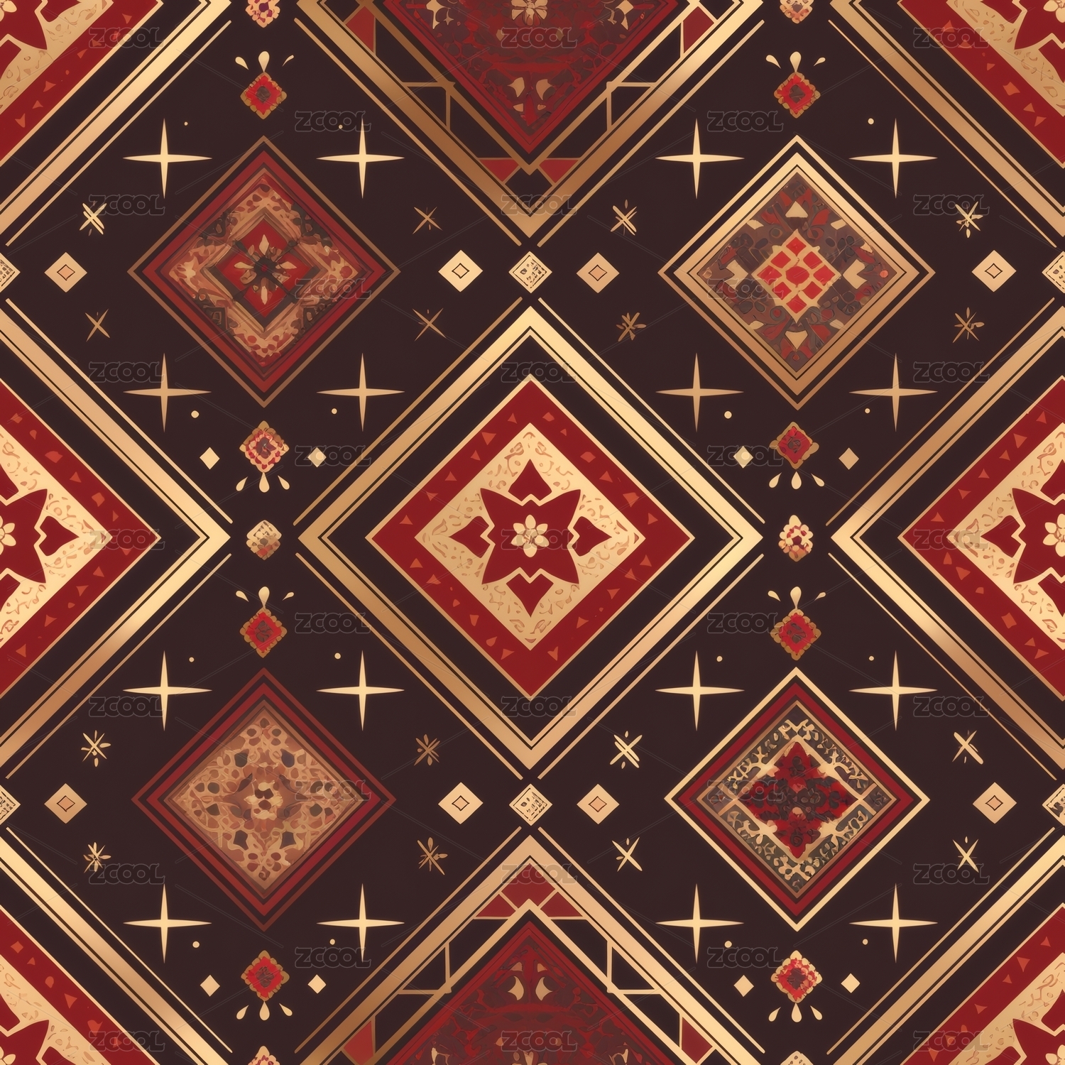 红棕几何复古花纹图案