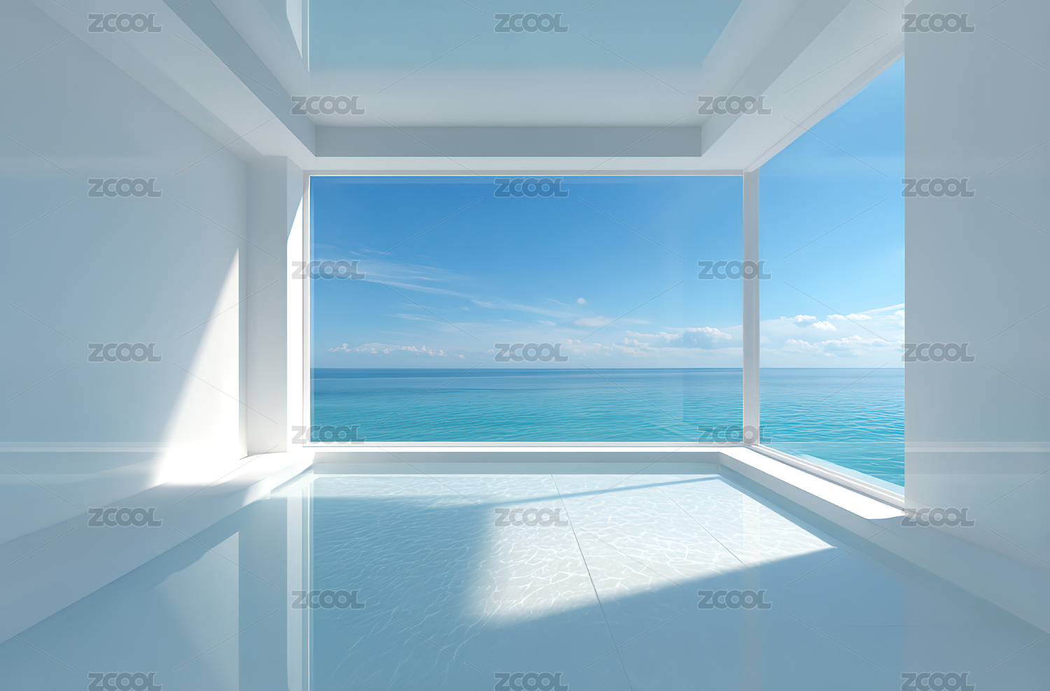 现代简约室内窗外海天一色