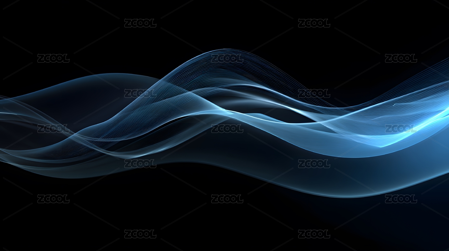 蓝色波浪线与黑色背景的流动感