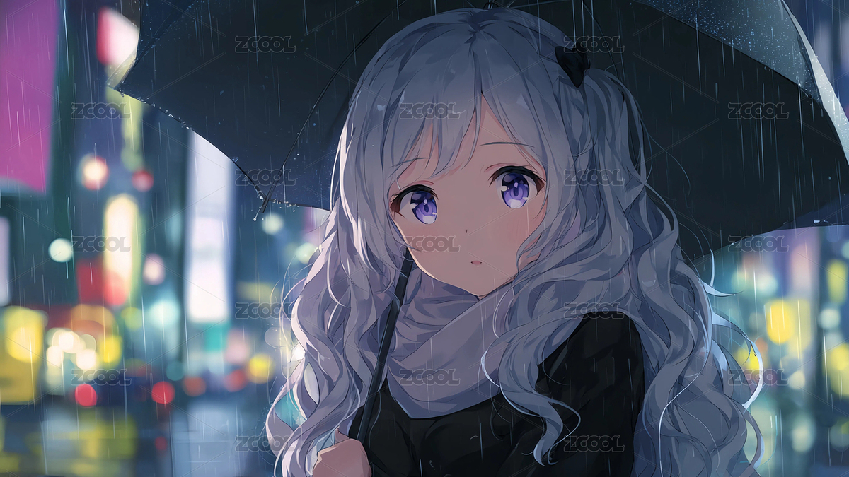 可爱的动漫女孩新海城风格唯美风格壁纸背景