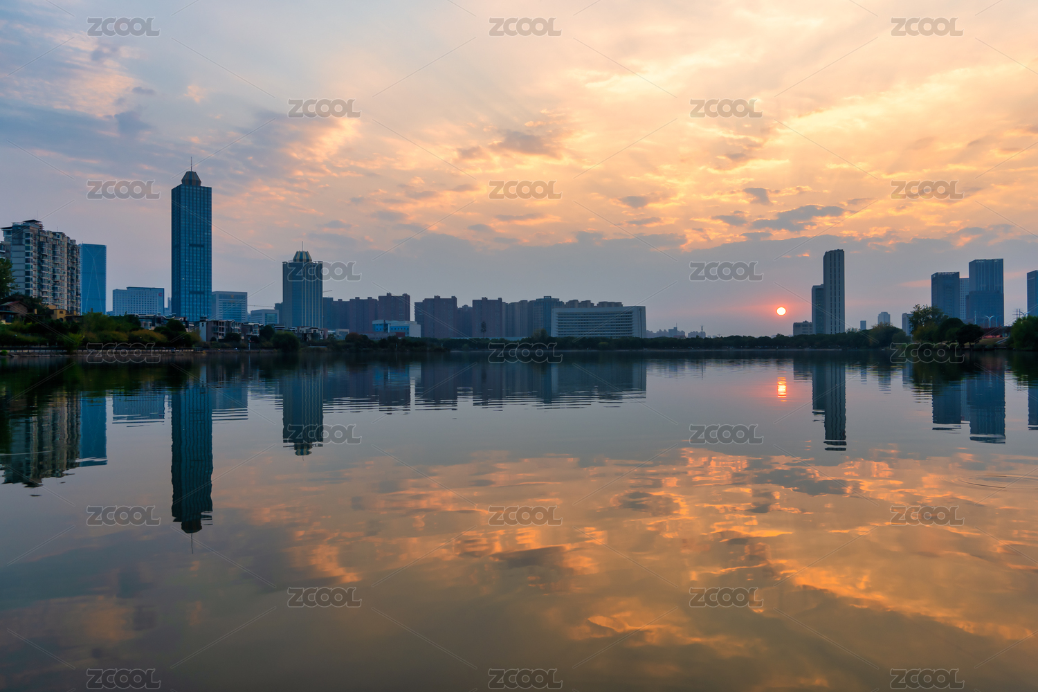 湖北武汉金银湖欧亚广场航天三江晚霞风光