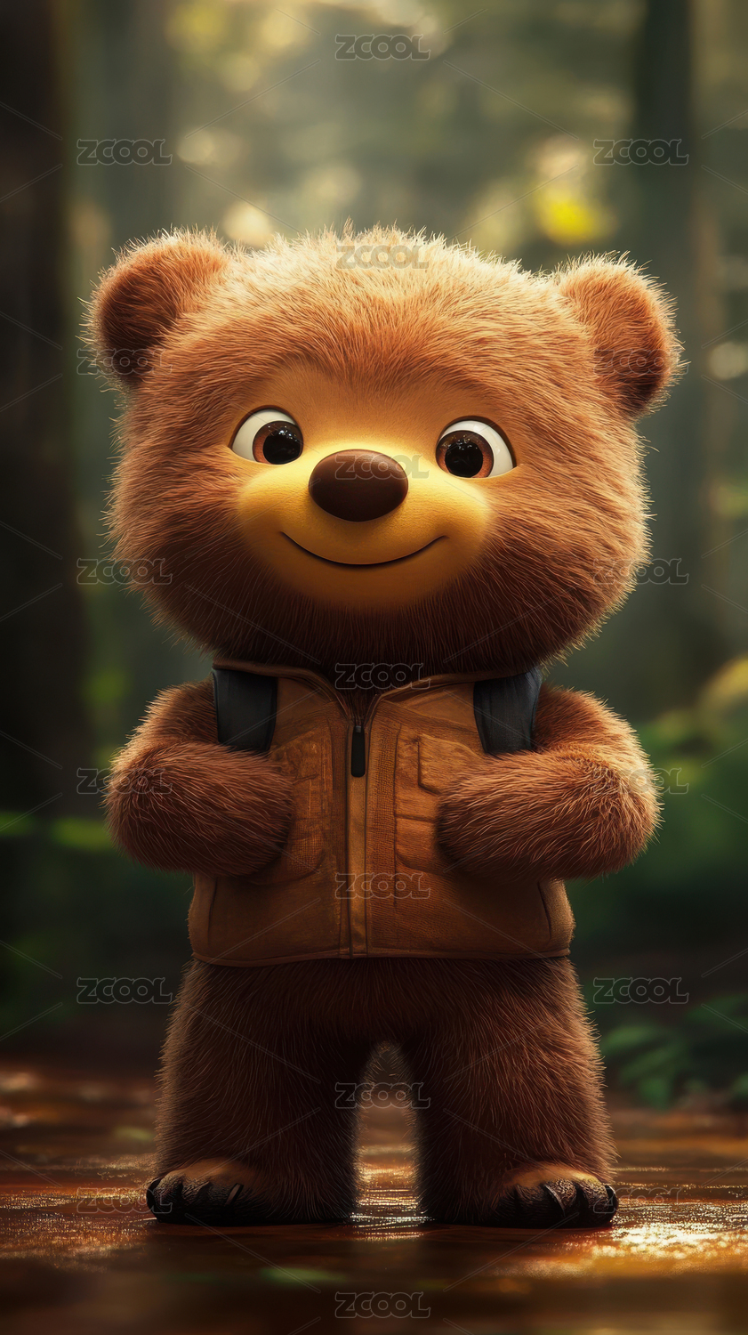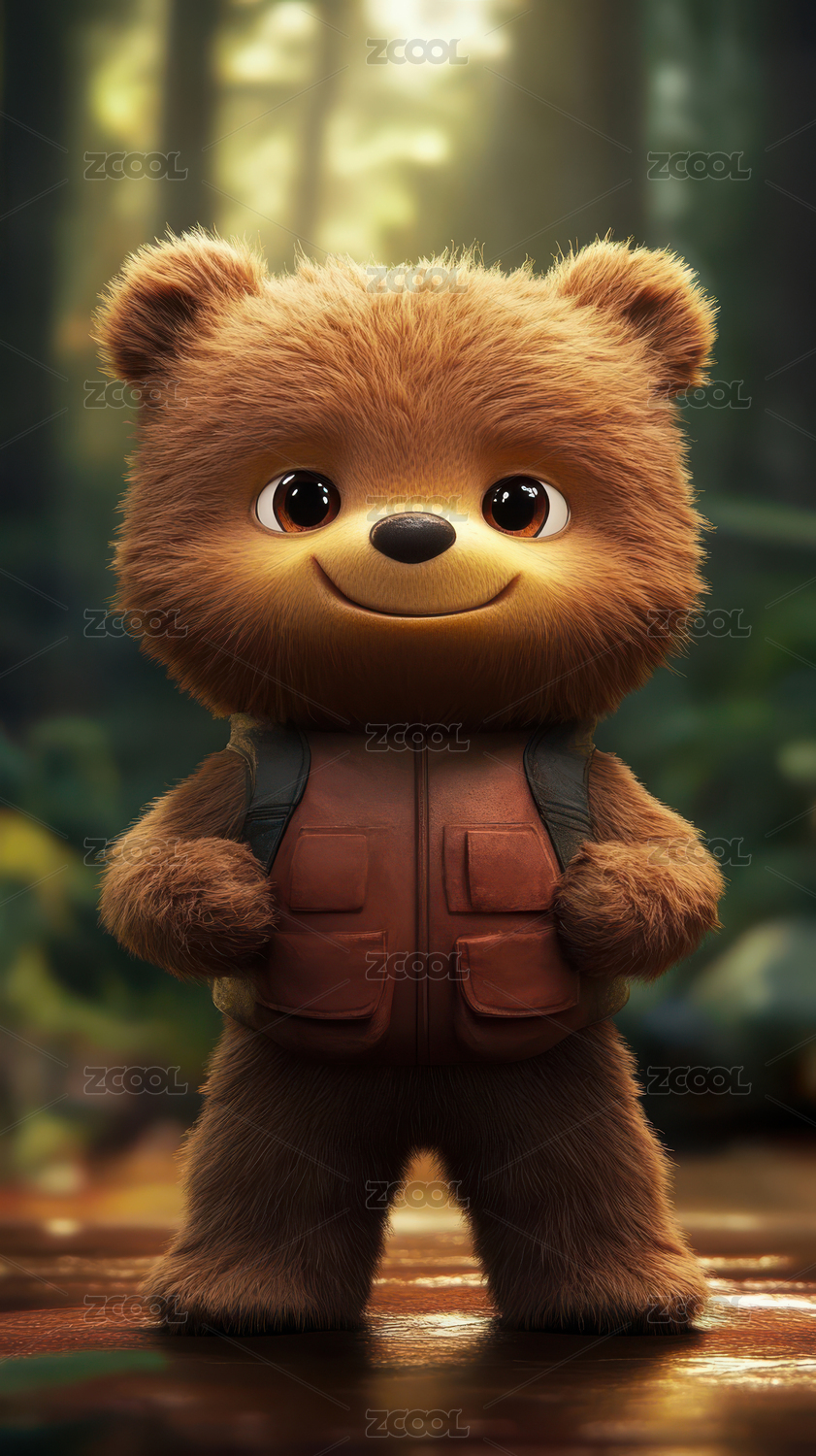 毛绒小熊可爱形象展示场景