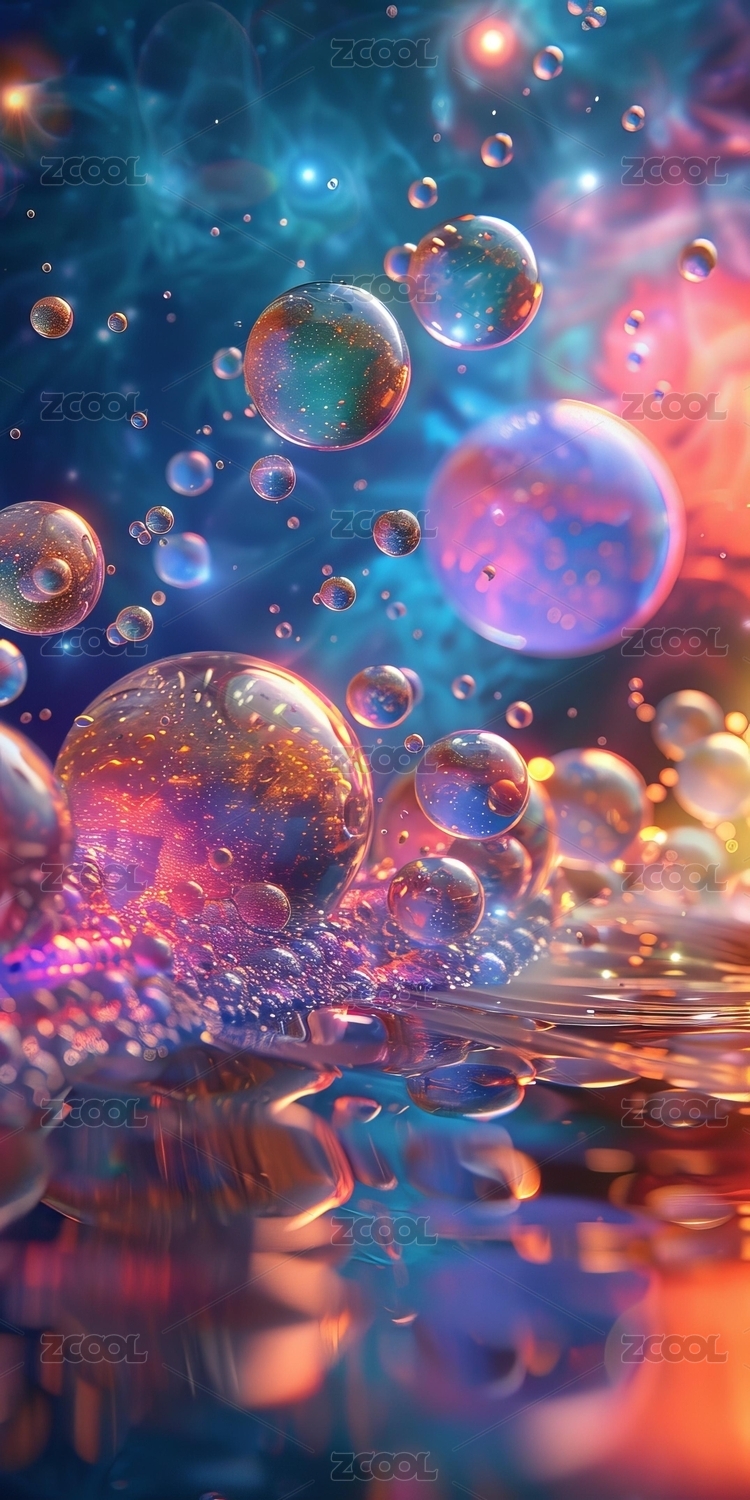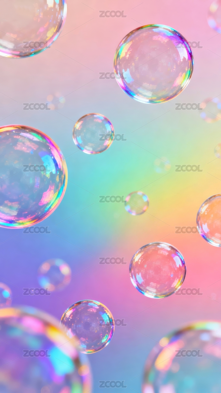 色彩缤纷的泡泡漂浮在一个奇妙的梦境中