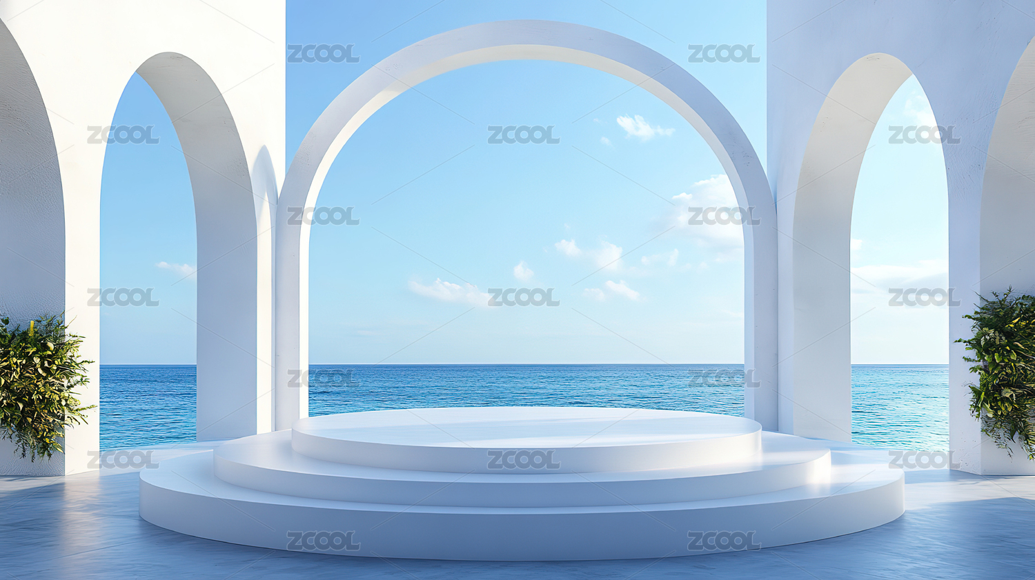 主视觉,商业,壁纸,场景,行业,白色,展台,清新,海景,展示
