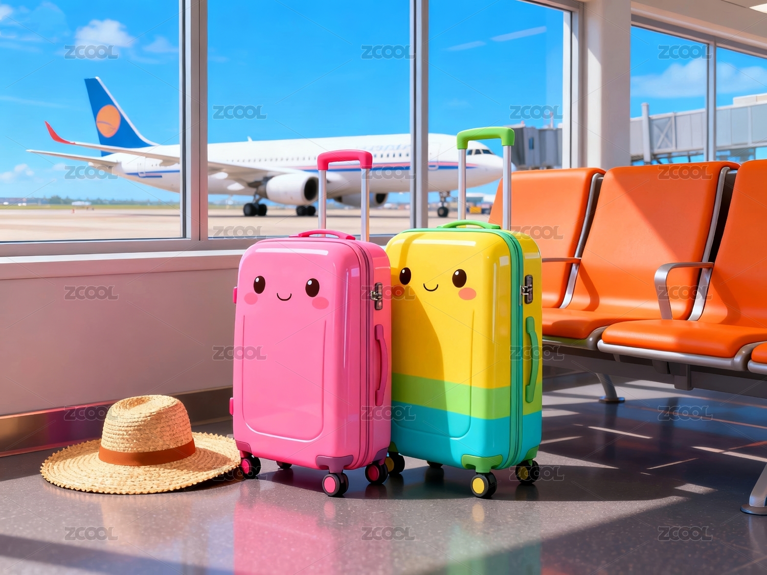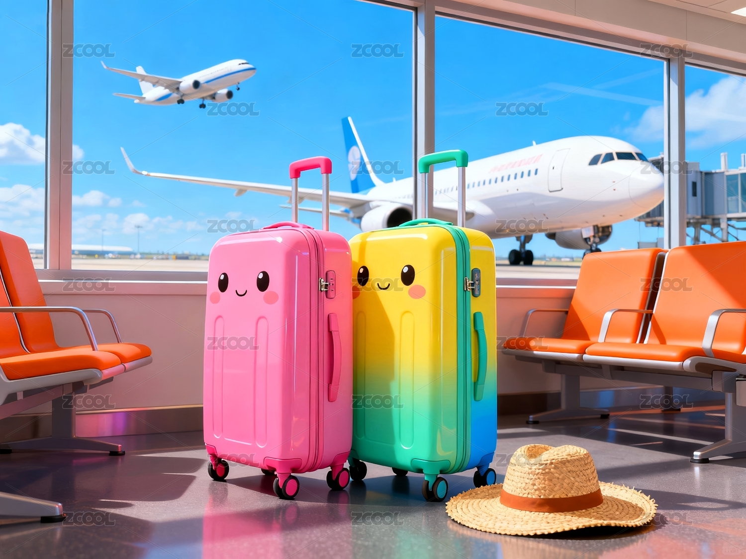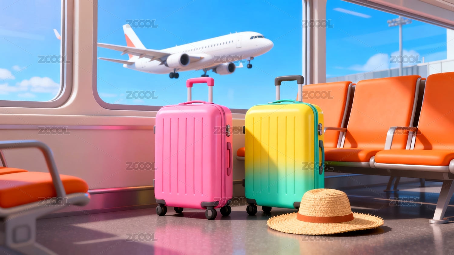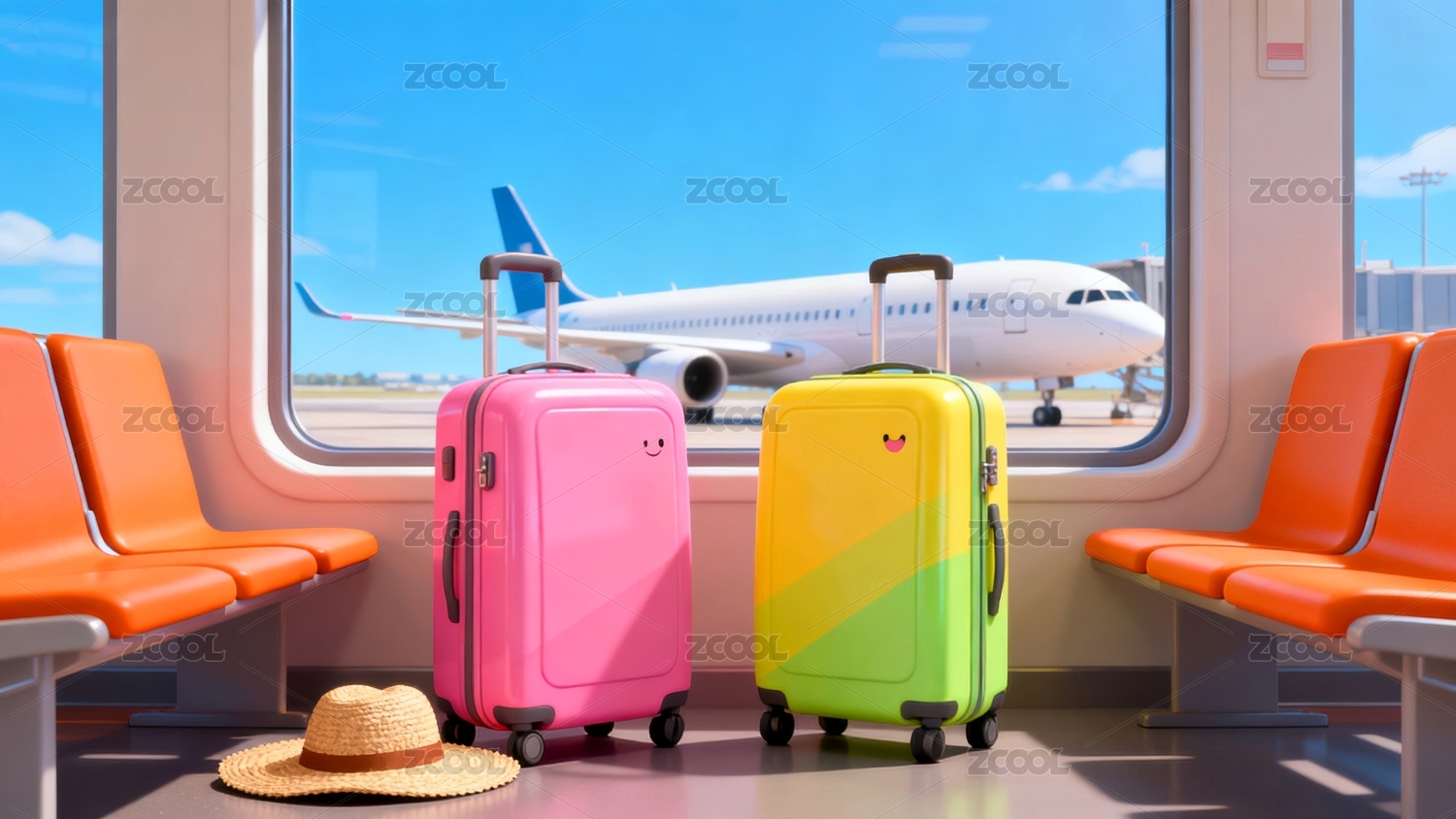 彩色行李机场商业壁纸场景