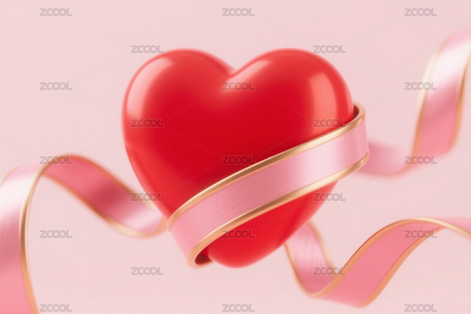 情人节,爱心,心形,红丝带,玫瑰花,花卉,红背景,浪漫,装饰,缠绕