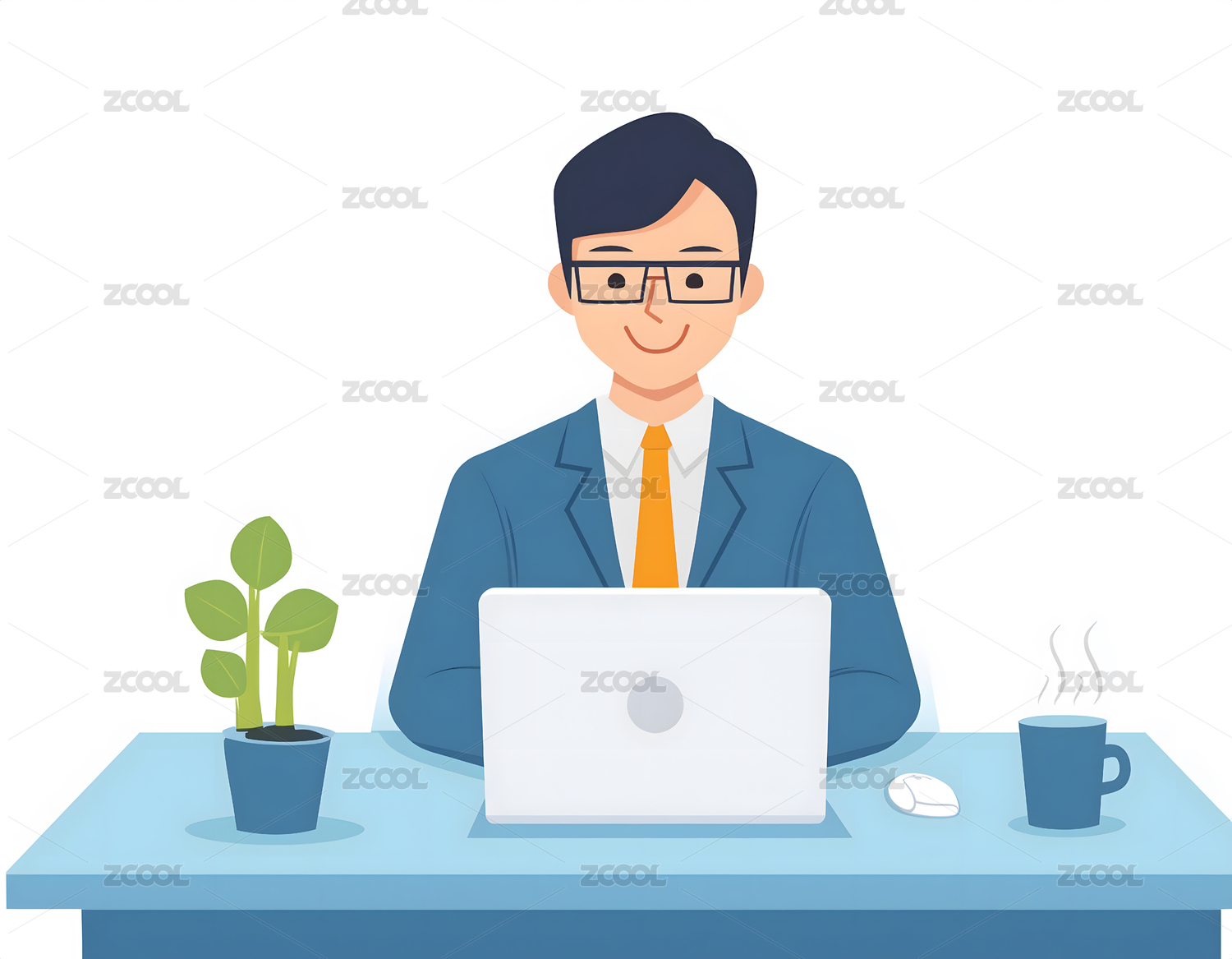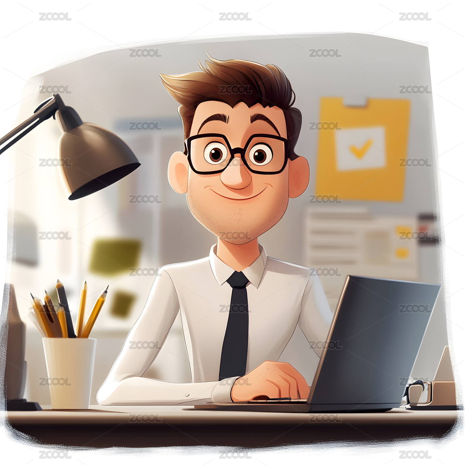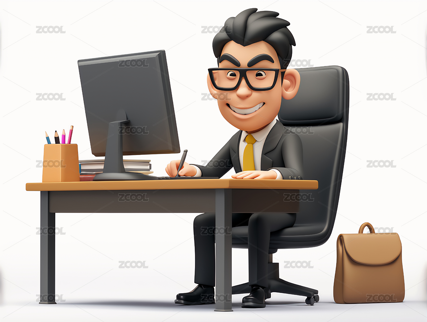 3D,插画,卡通,图标,办公桌,仙人掌,文具,坐姿,办公室,办公