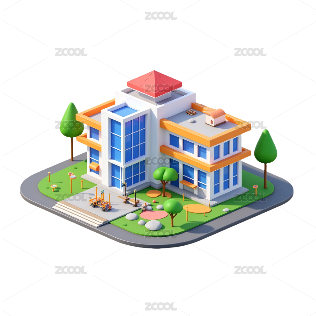 3D,插画,卡通,图标,银行,建筑,大楼,蓝色