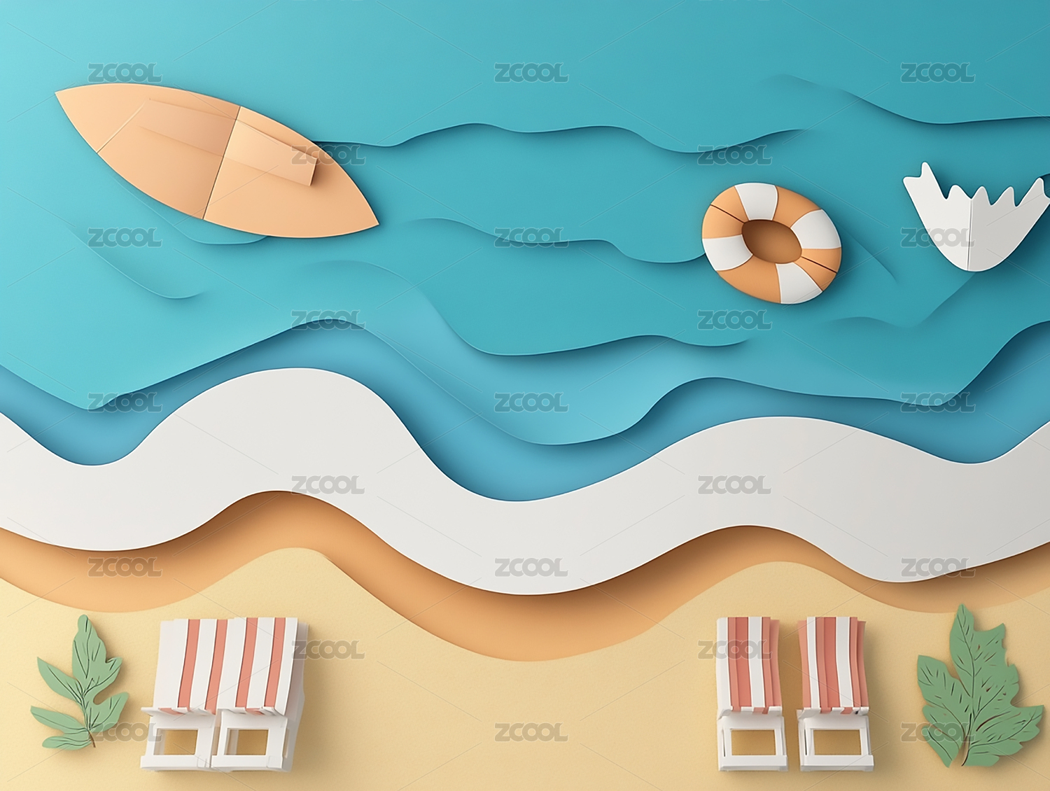 夏天海边沙滩度假旅游夏季海滩清新3D插画