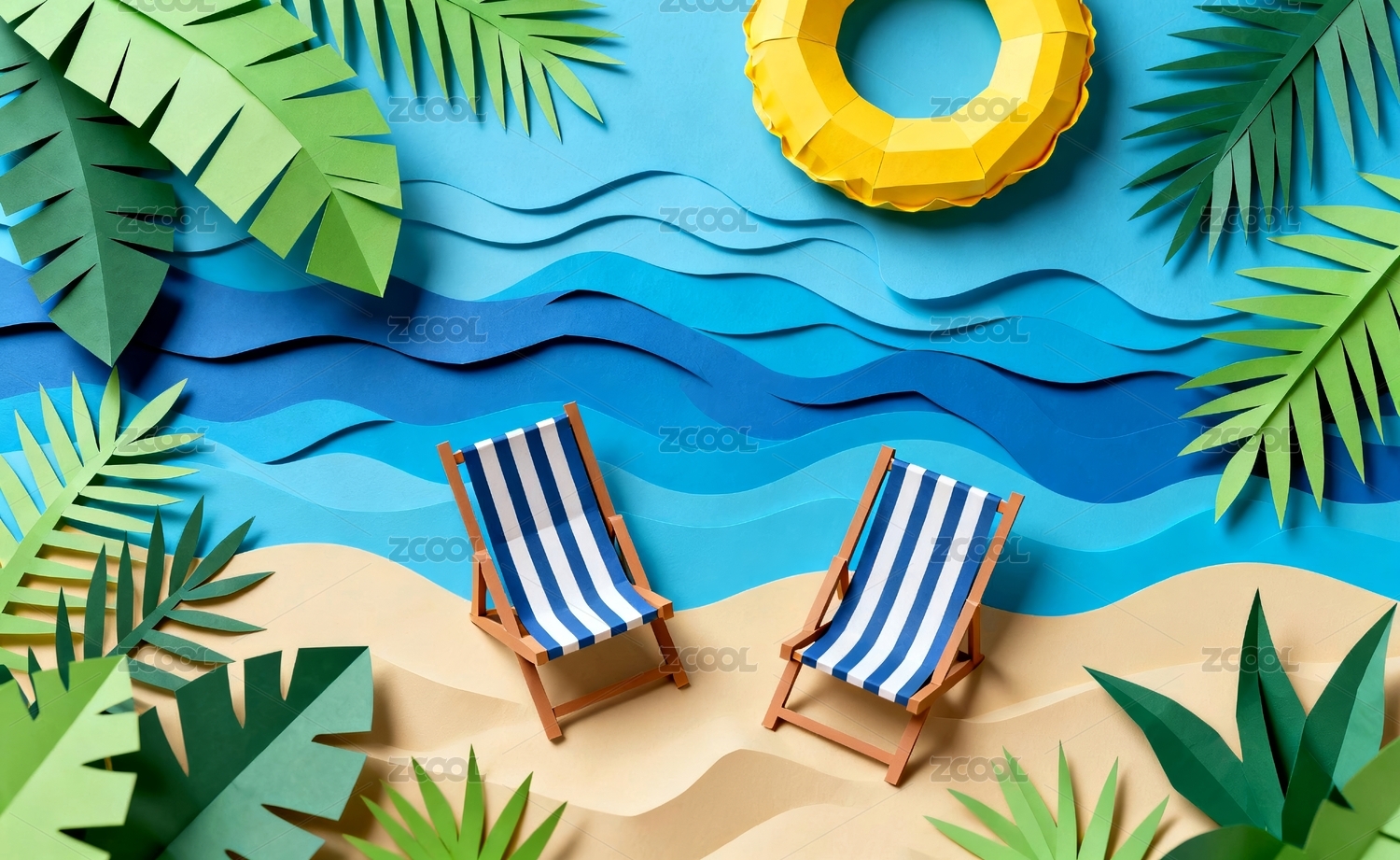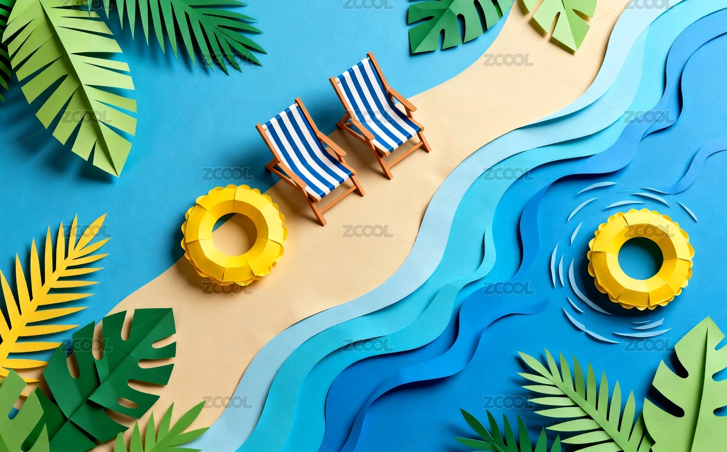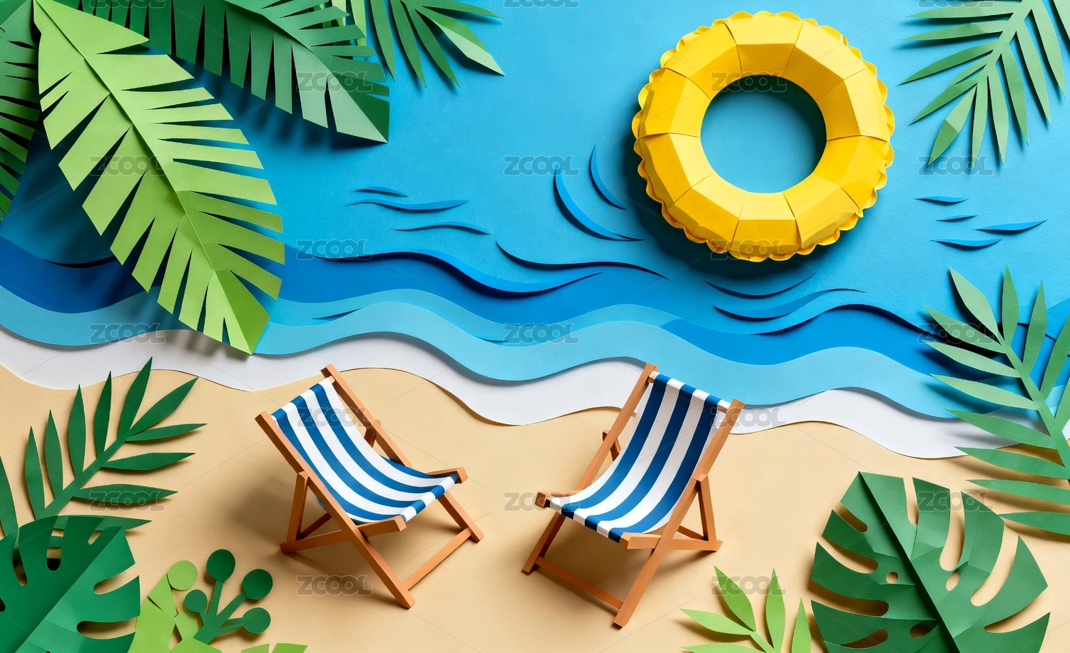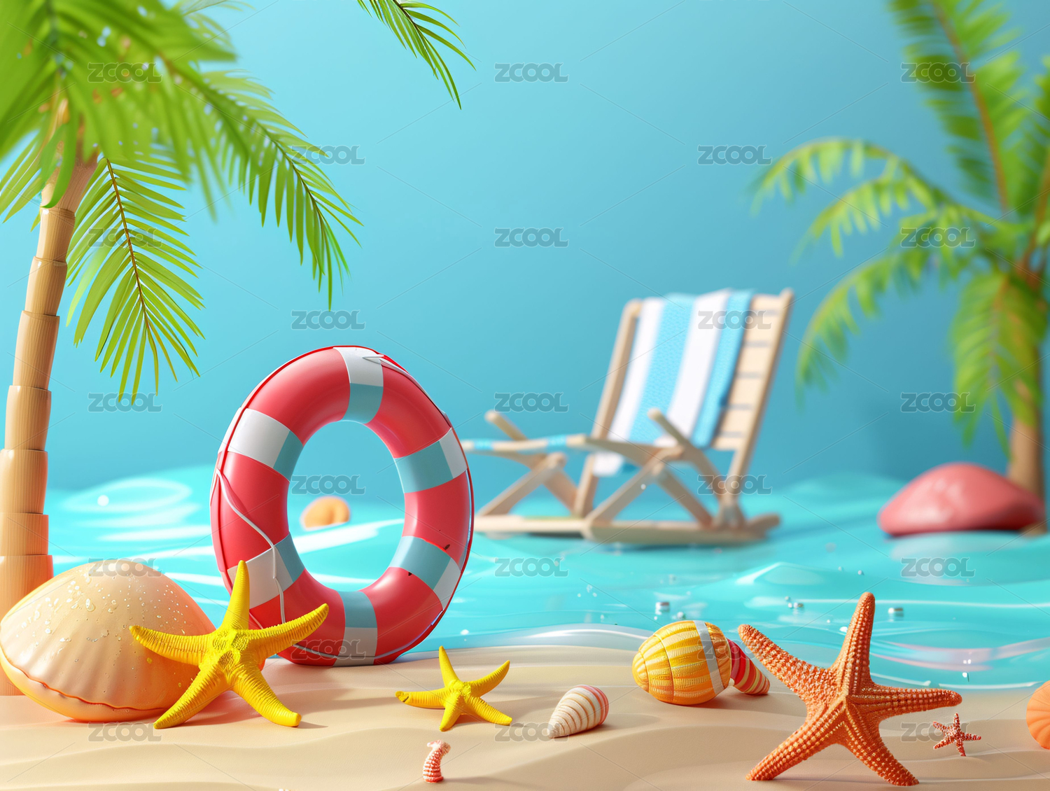 夏天海滩度假3d立夏节气放假旅行概念插图