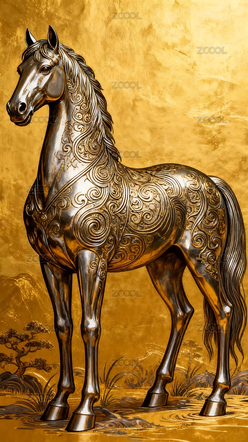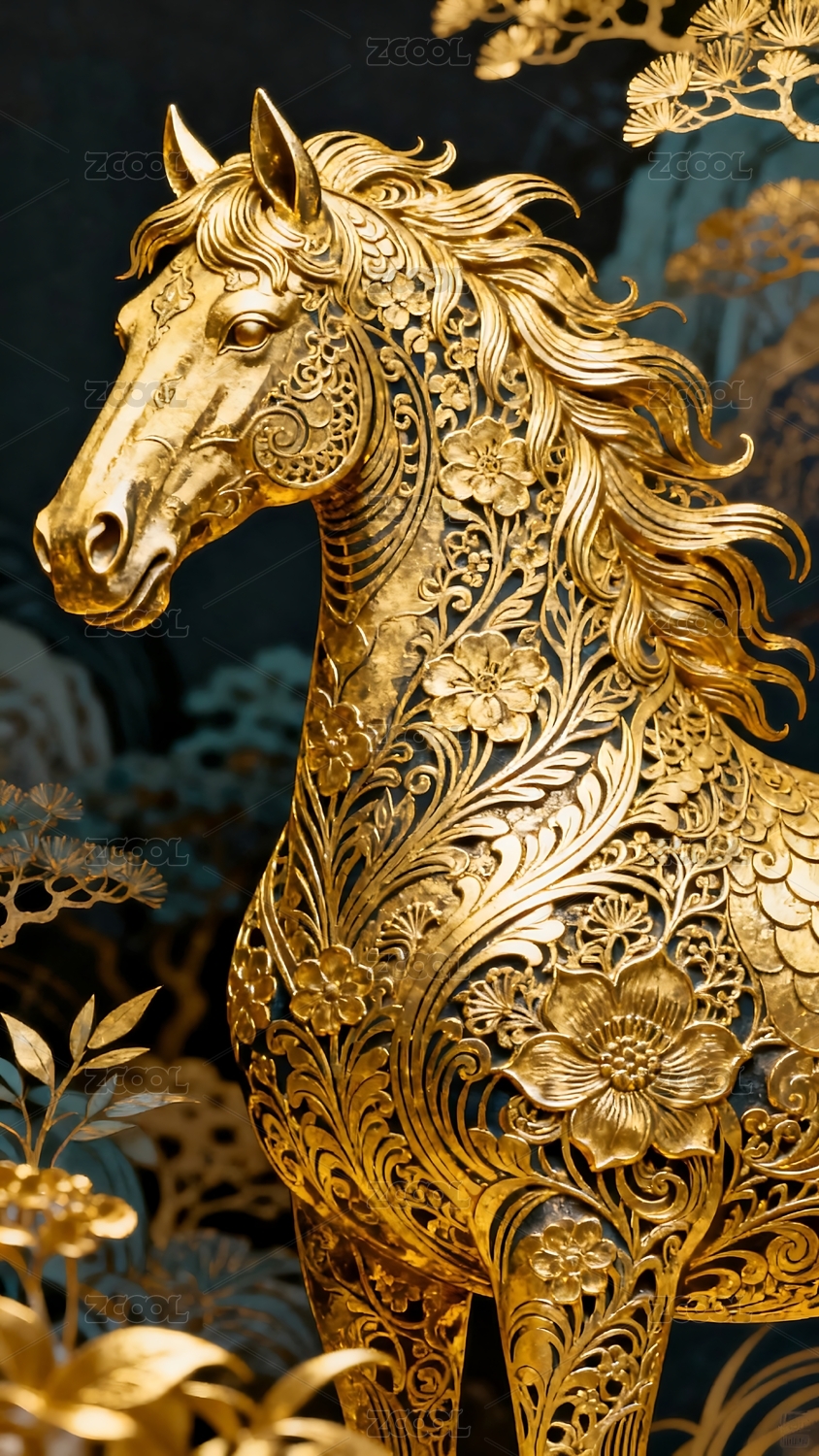 马,金色,装饰,设计,花纹,背景,金属,艺术,细节,雕刻