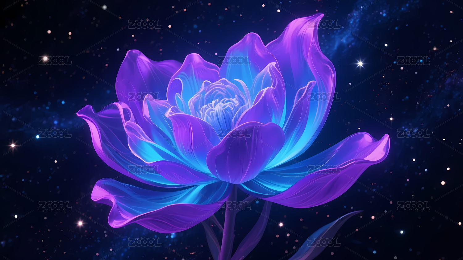花朵花瓣绽放科技背景抽象数字艺术插画
