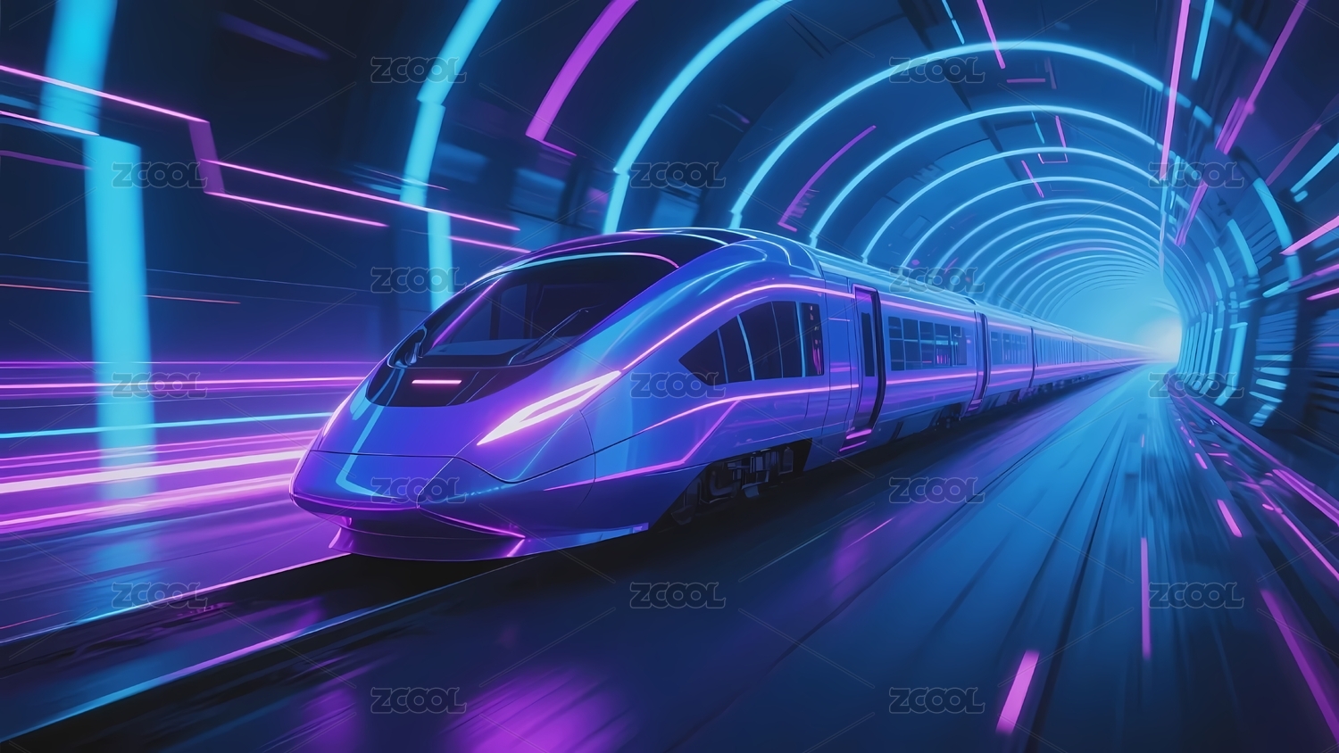 未来列车在霓虹隧道中疾驰