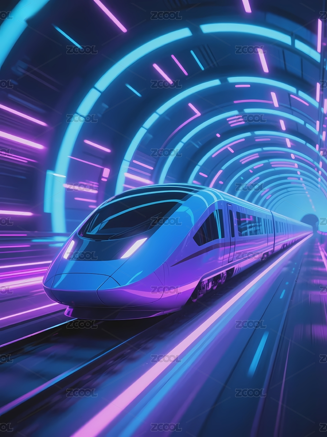 未来列车在霓虹隧道中疾驰