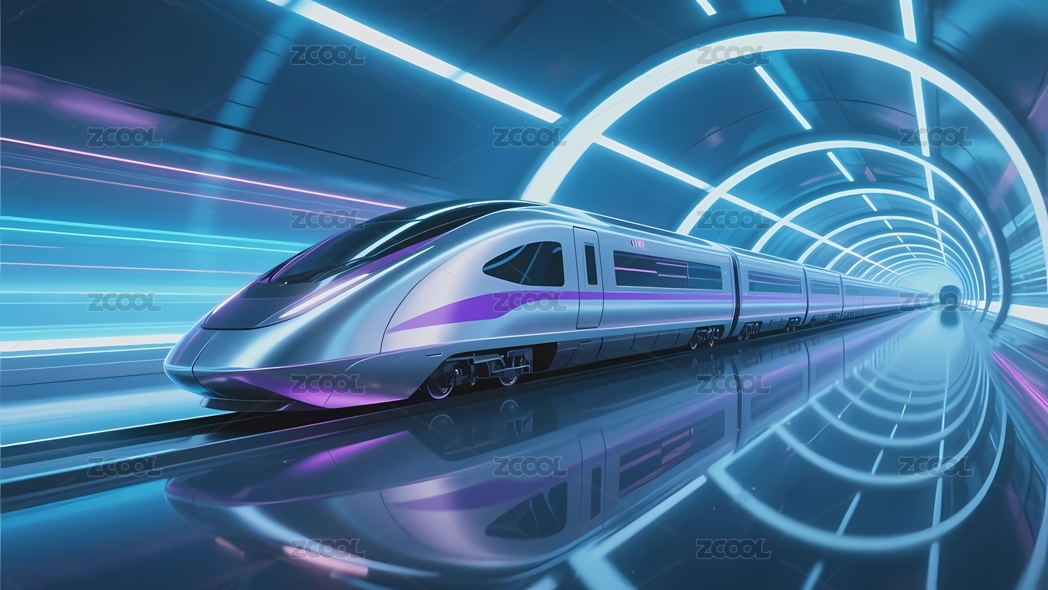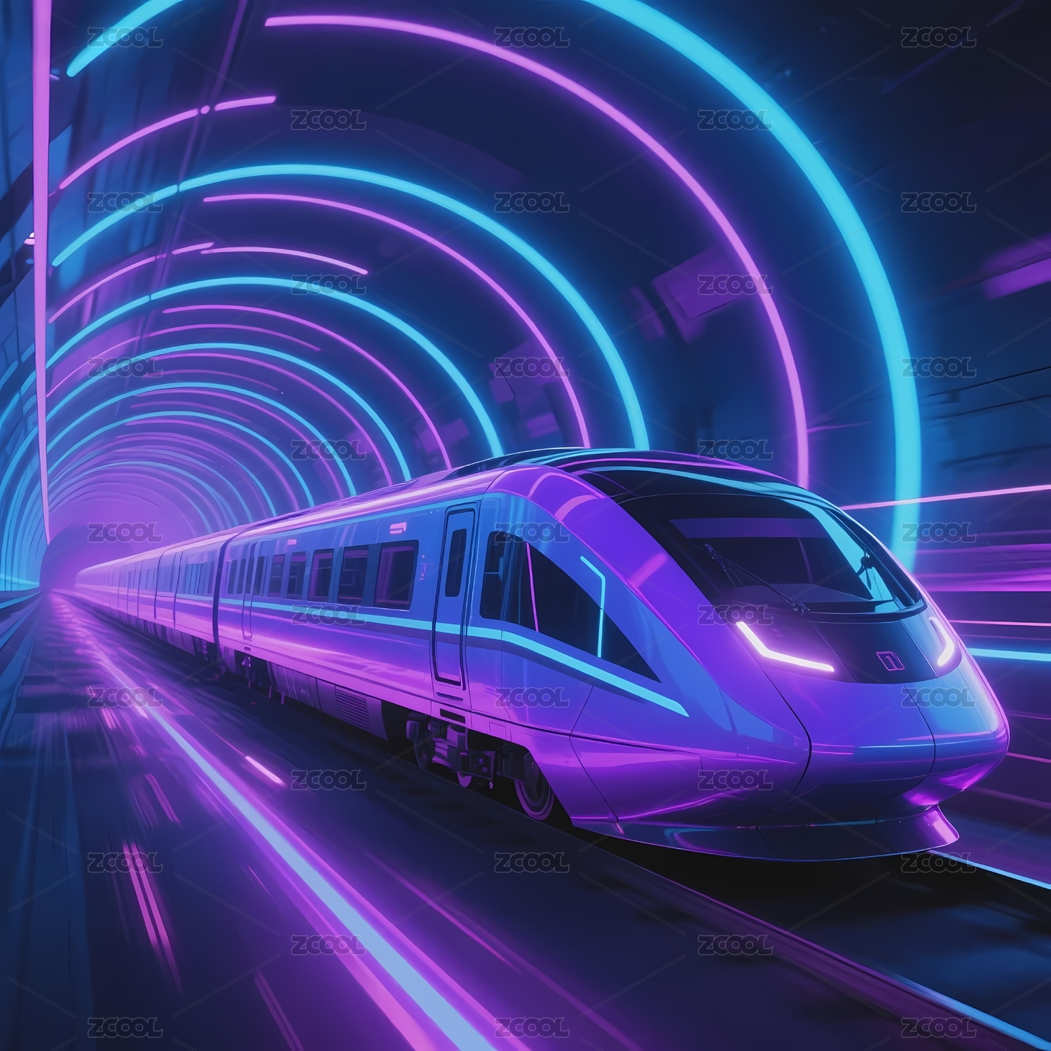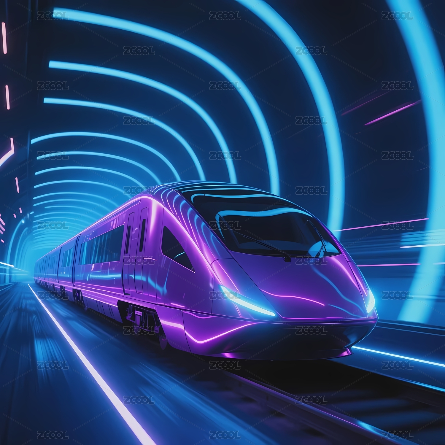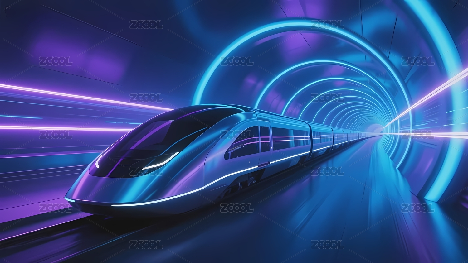 现代化,交通,高速列车,霓虹隧道,未来科技,蓝色光线,城市交通,视觉冲击,智能出行,动态效果