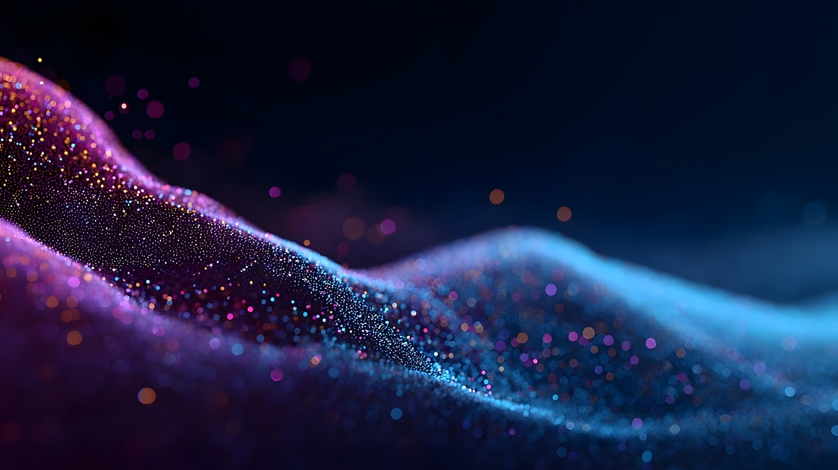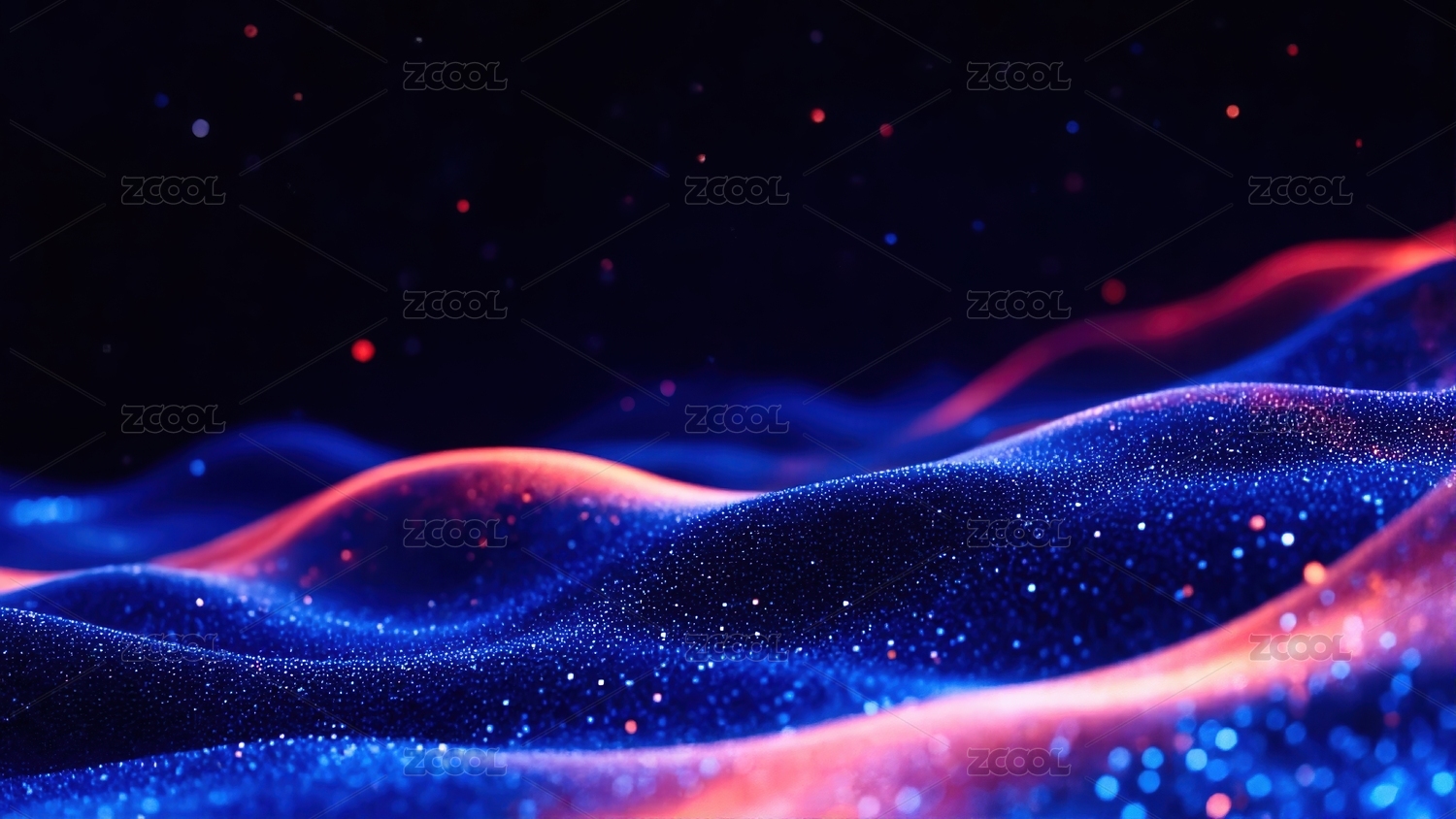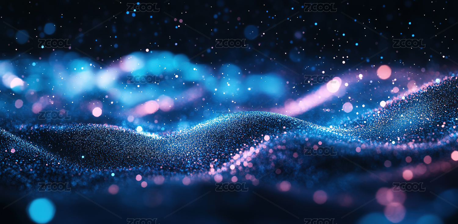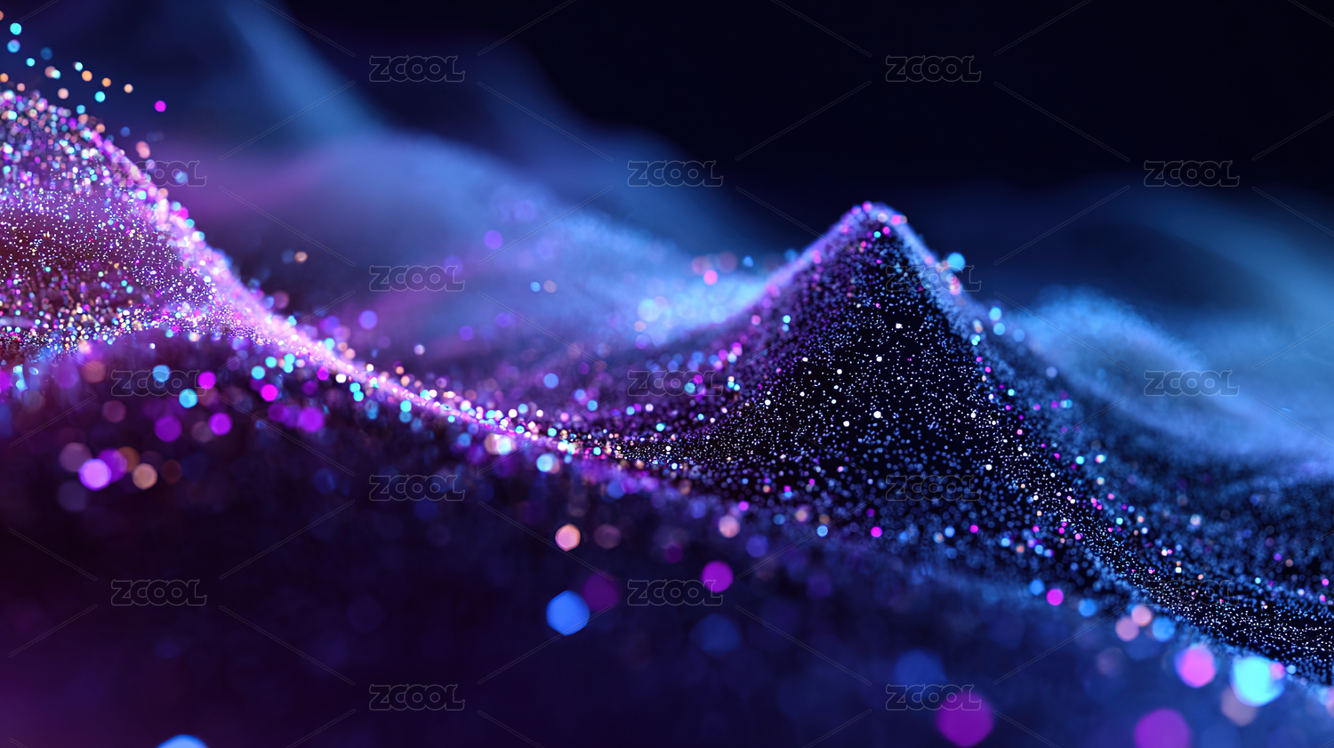 抽象粒子山峰,蓝色紫色光影,梦幻意境