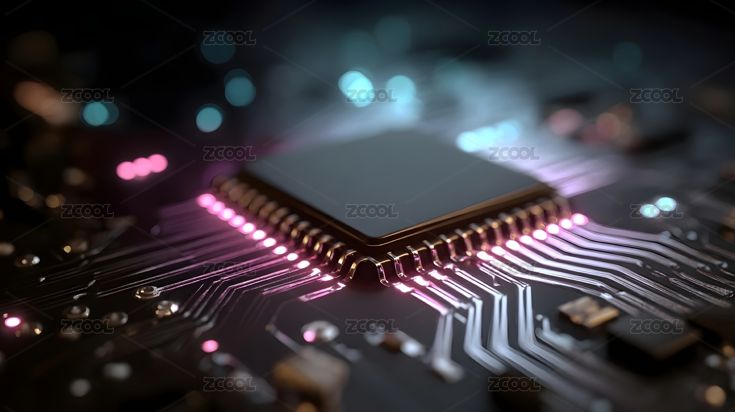芯片,电路,科技,电子,技术,线路,黑色,背景,光效,特写