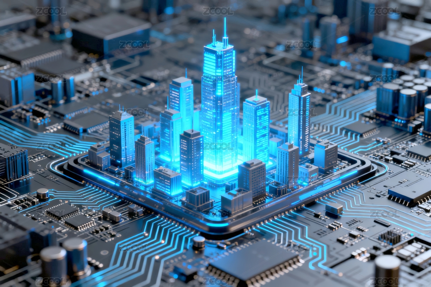 虚拟现实,现代科技,高楼大厦,科技发展,电路板,科技感,电子元件,数据传输,智能城市,信息网络