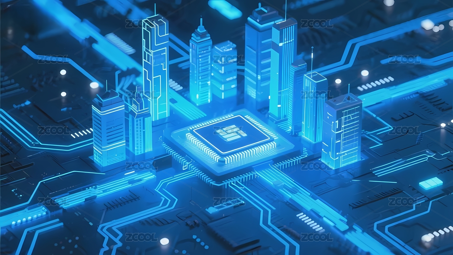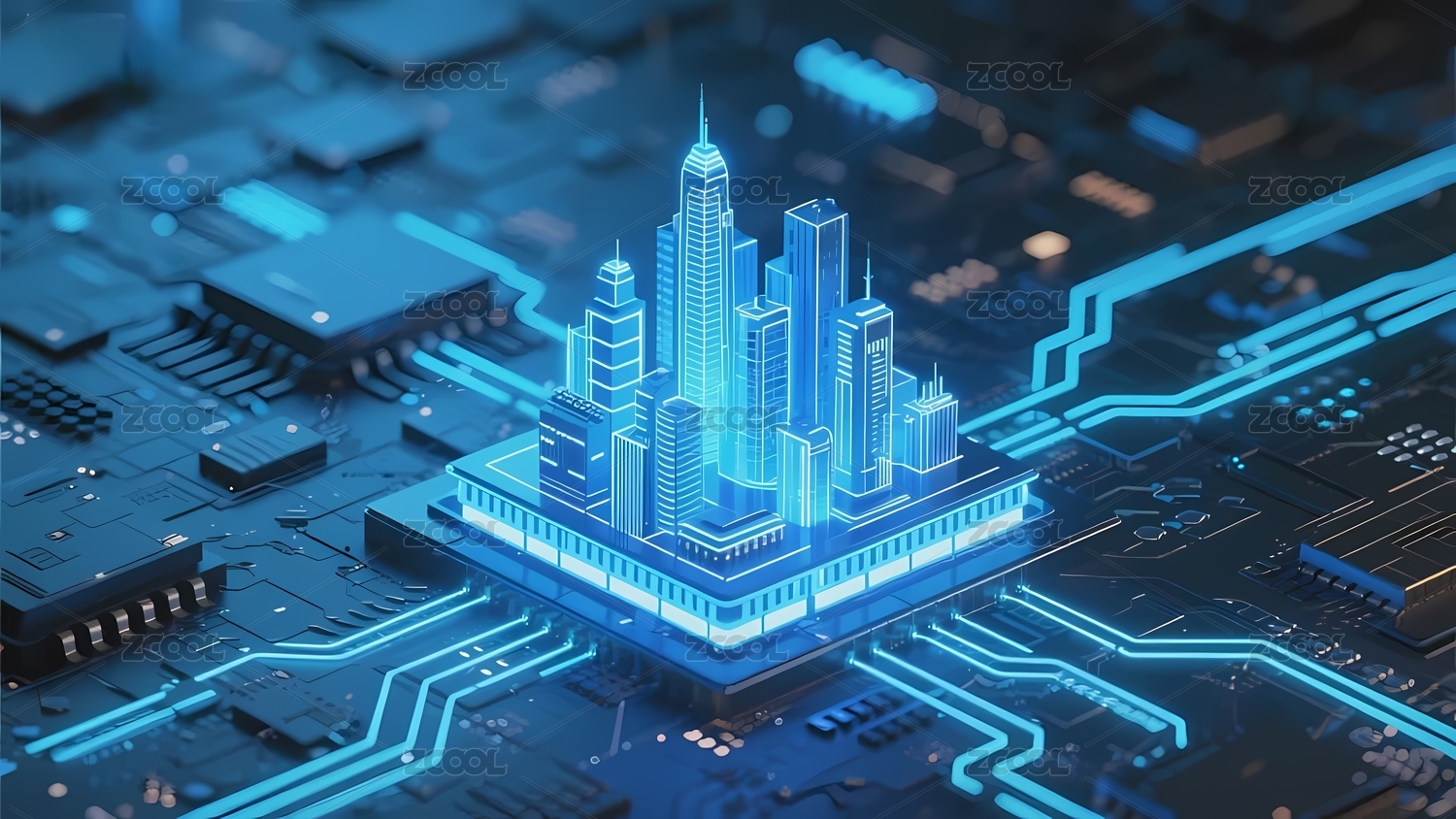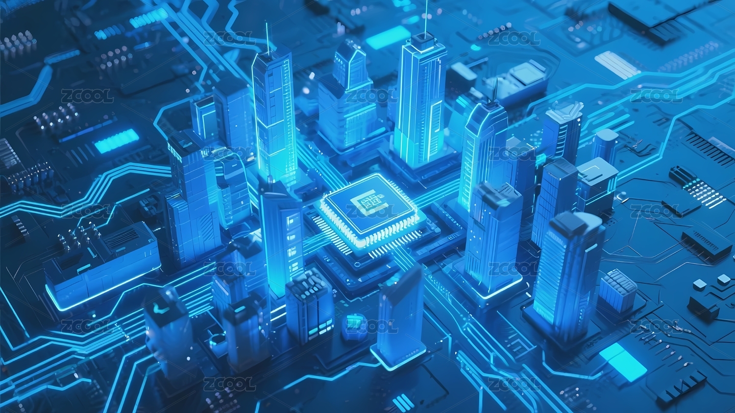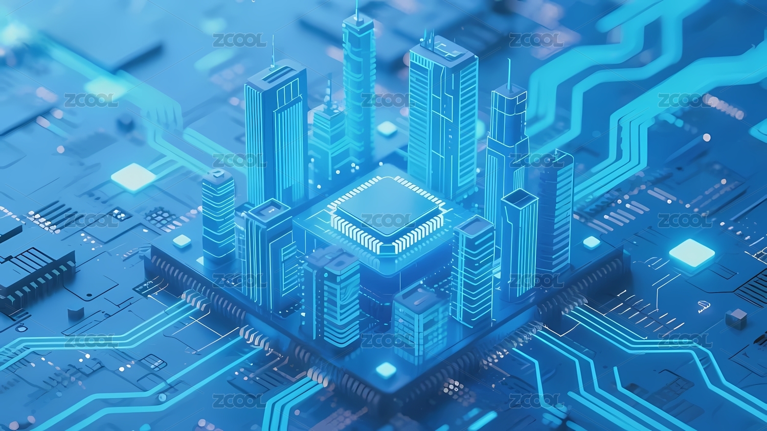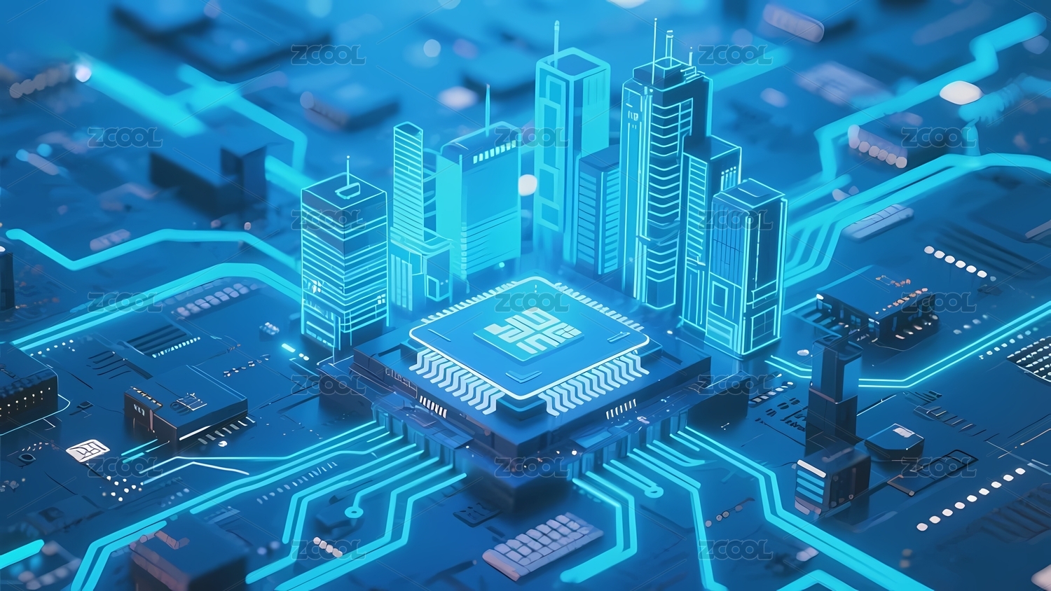 未来科技电路板上的高楼大厦