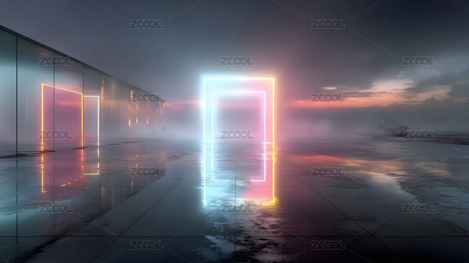 科技,发光,创新,光线,反射,地面,未来,虚拟,数字,明亮
