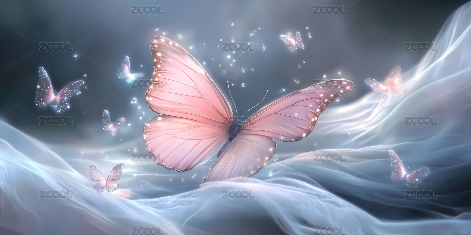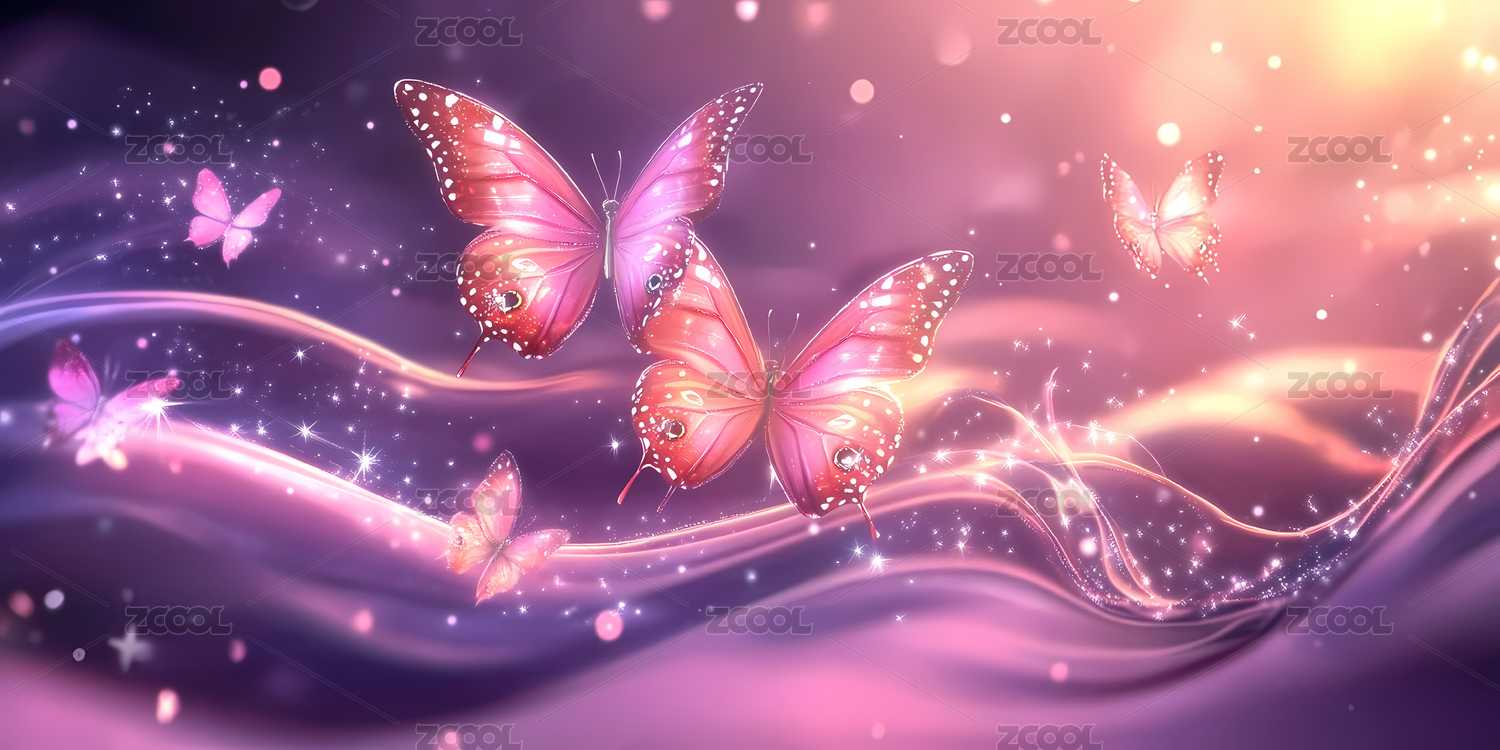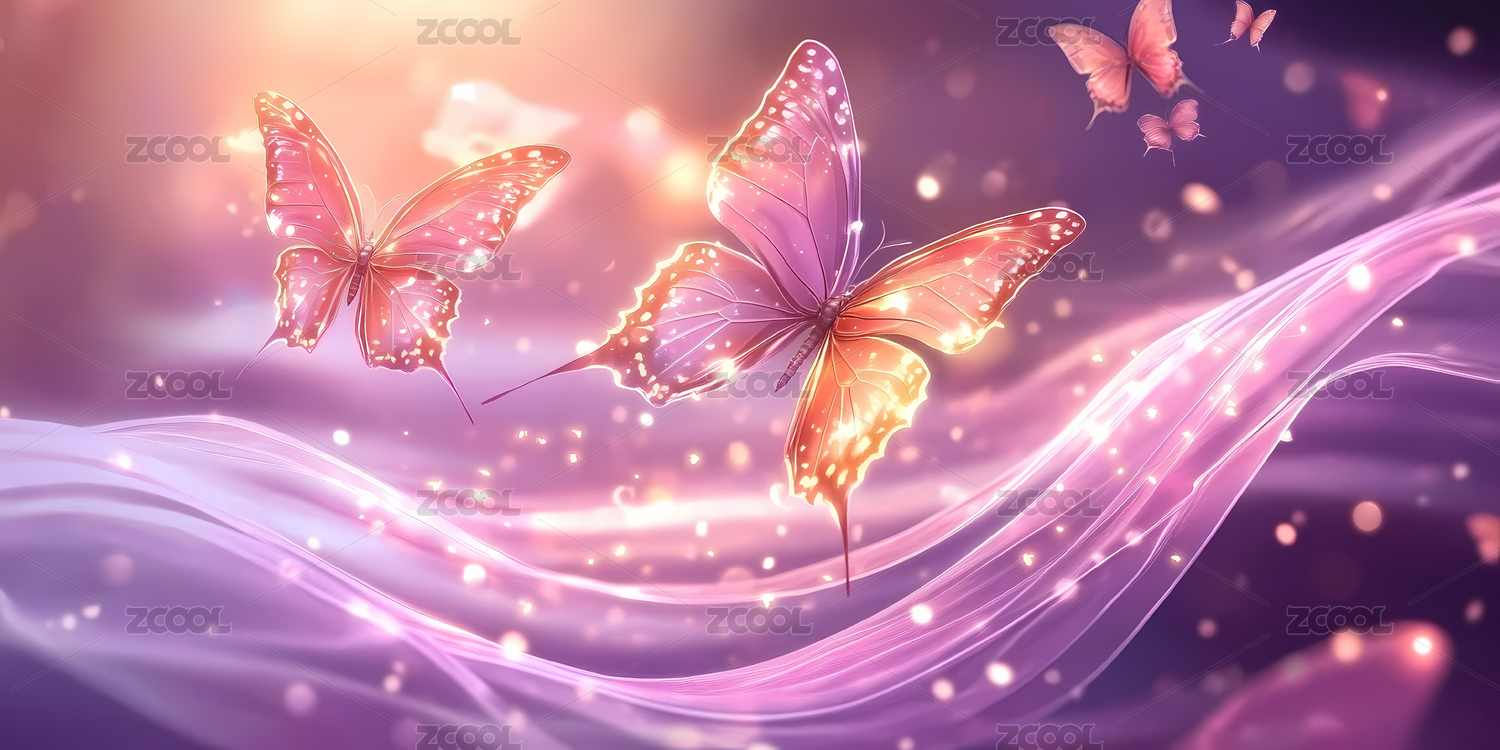 梦幻蝴蝶在紫色光晕中翩翩起舞
