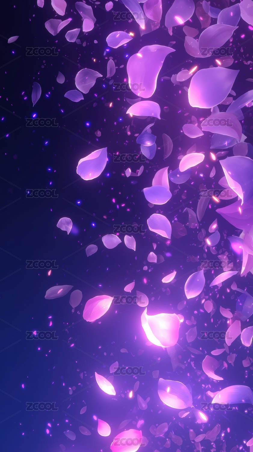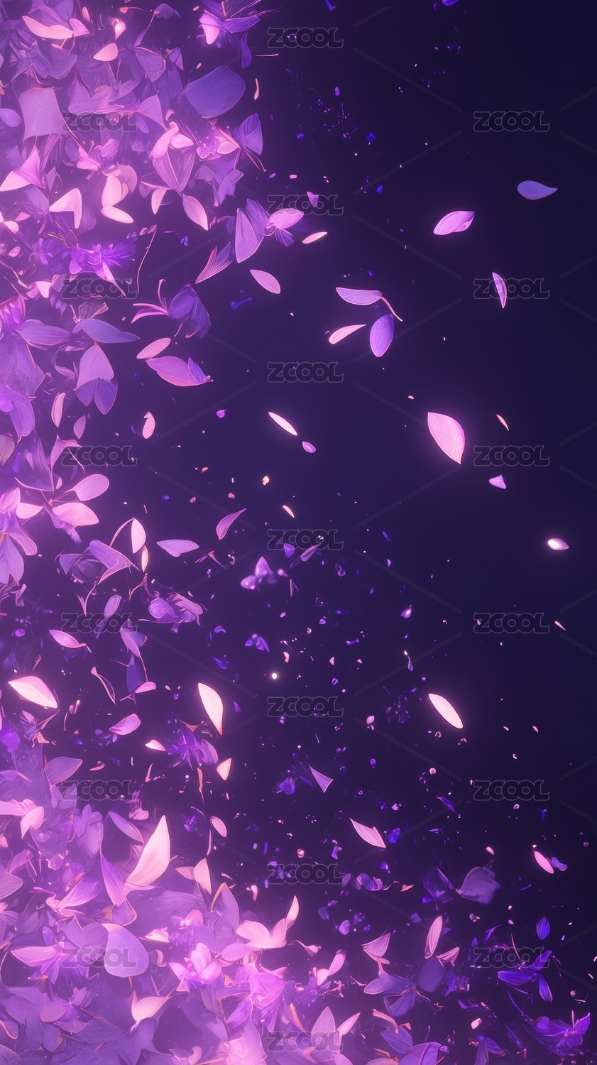 紫色花瓣飘落的梦幻场景