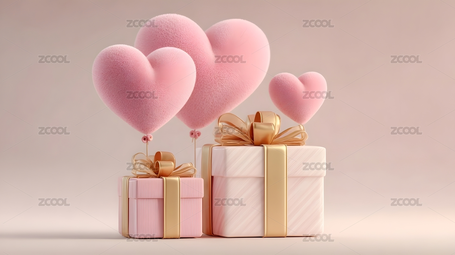 粉色礼盒与爱心气球的浪漫场景